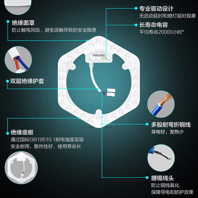 飞利浦LED模组灯芯灯管吸顶灯led灯盘磁吸灯板超亮节能圆形替换