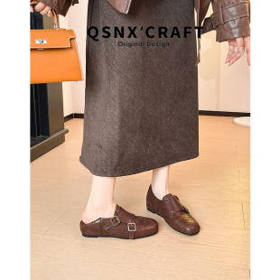 百搭软底单鞋 真皮版 黑色小皮鞋 女2025新款 子 英伦风皮带扣乐福鞋