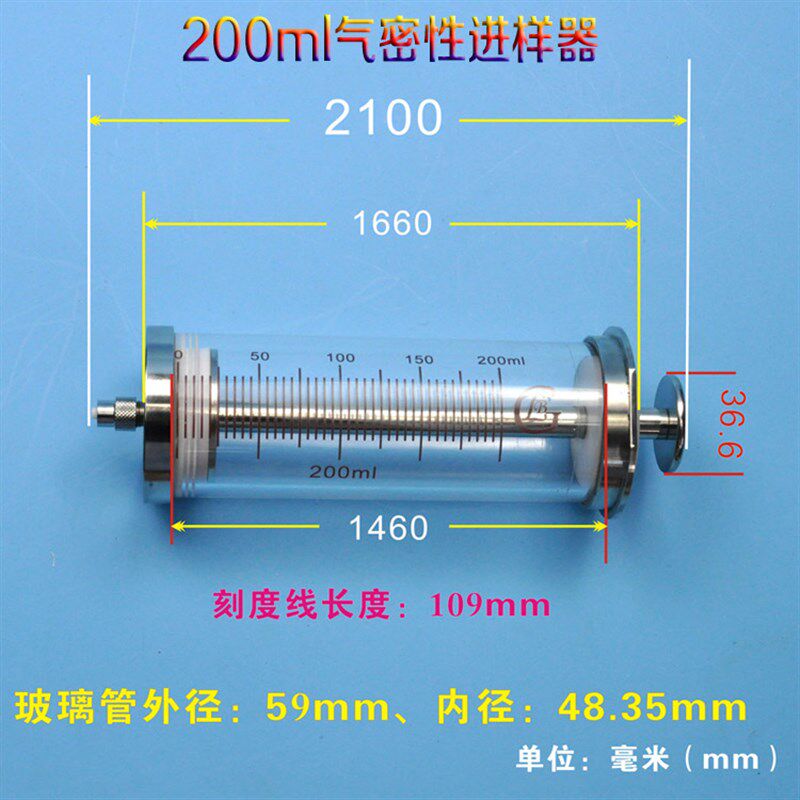 200ml气密性玻璃特氟龙微量进样器 高精度玻璃针筒 微量注射器