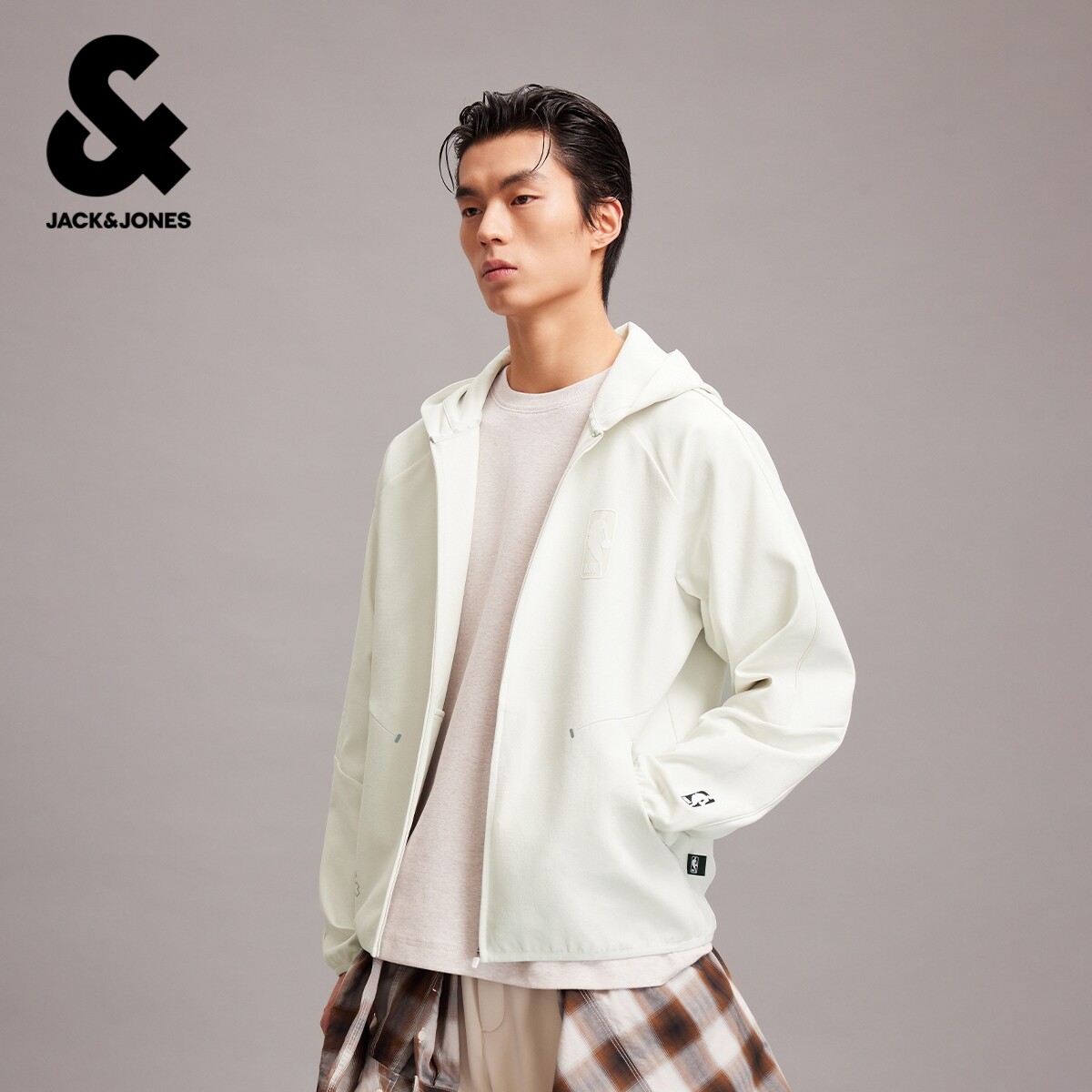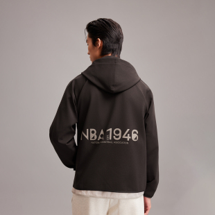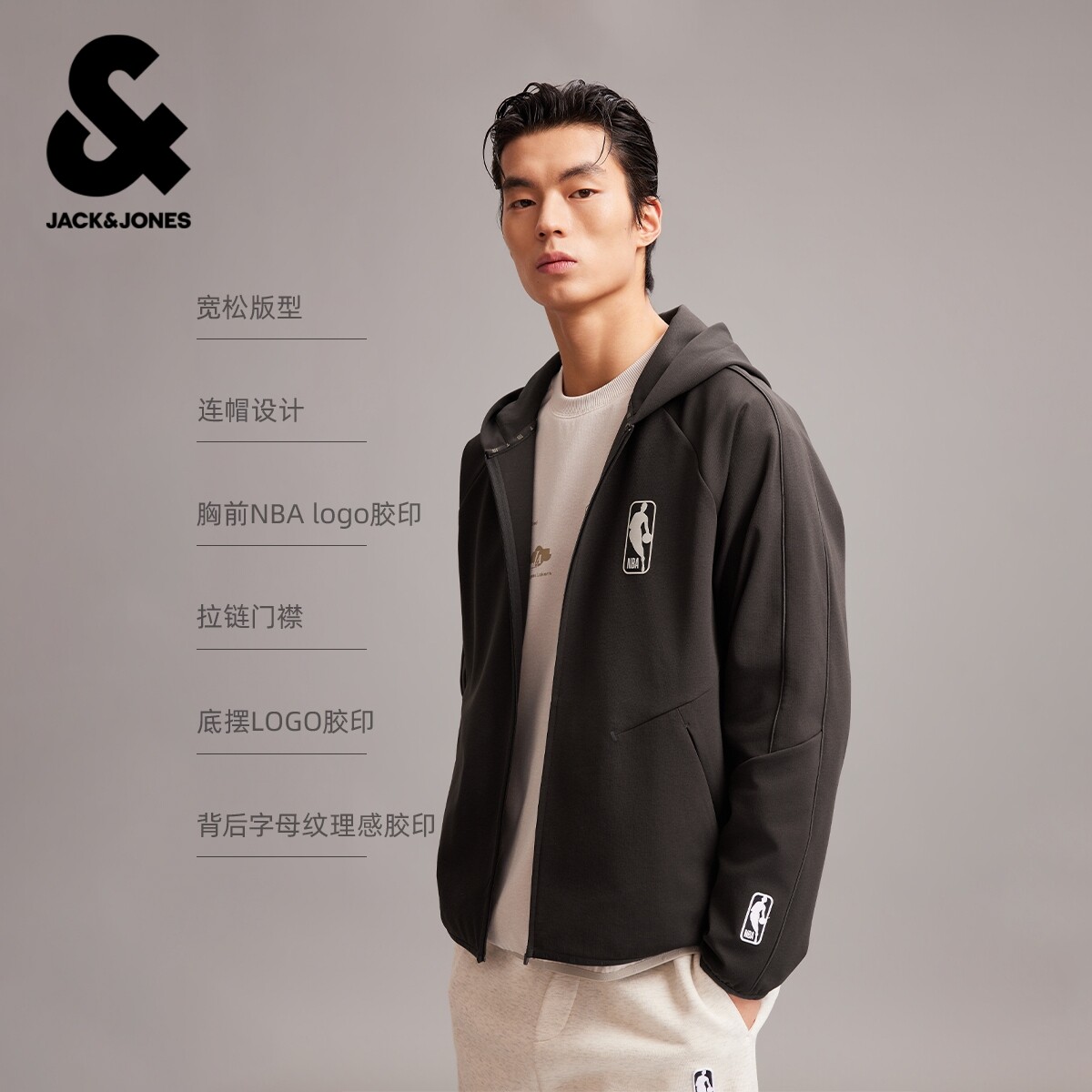 新款 春季 杰克琼斯男装 字母纹理胶印宽松连帽卫衣开衫 NBA联名