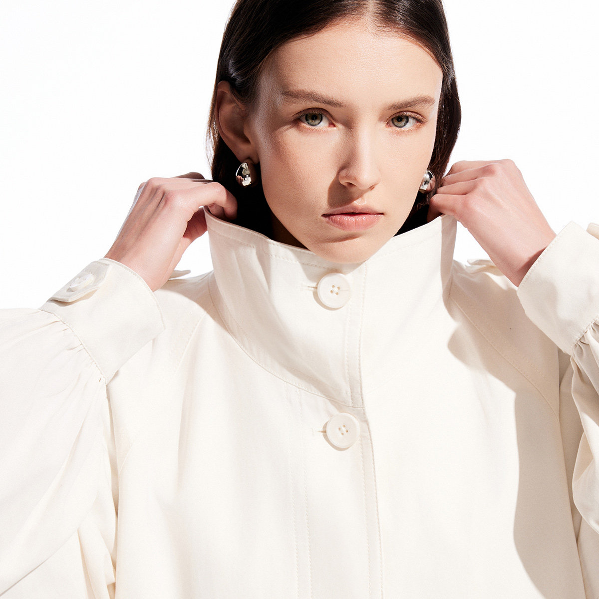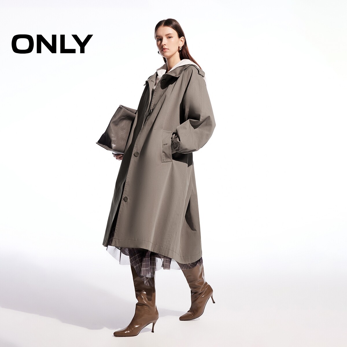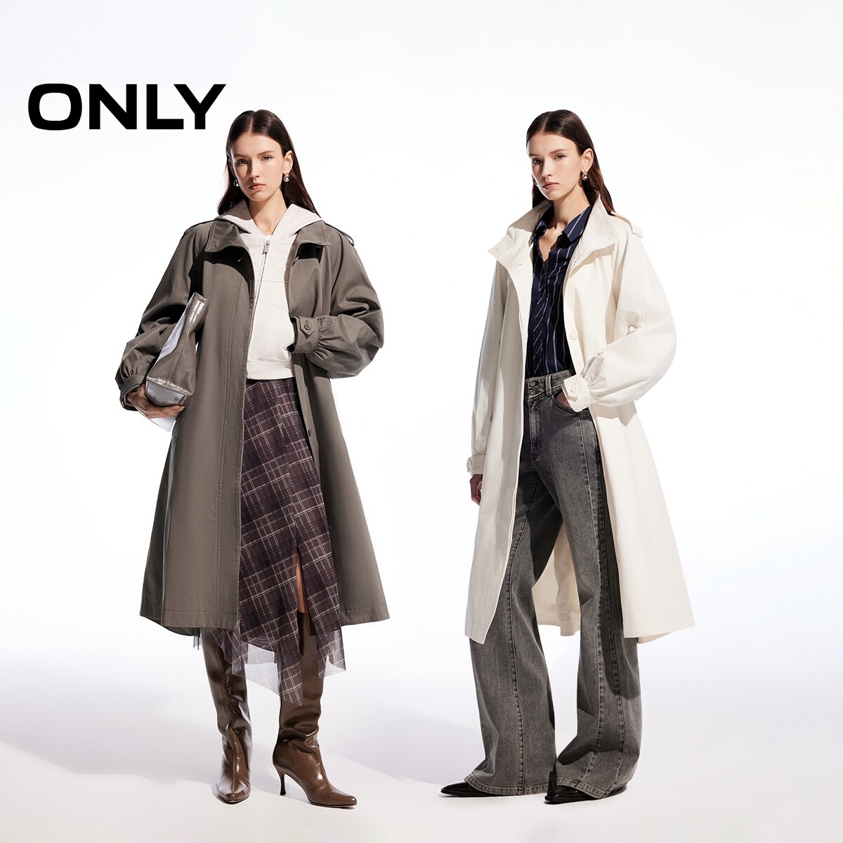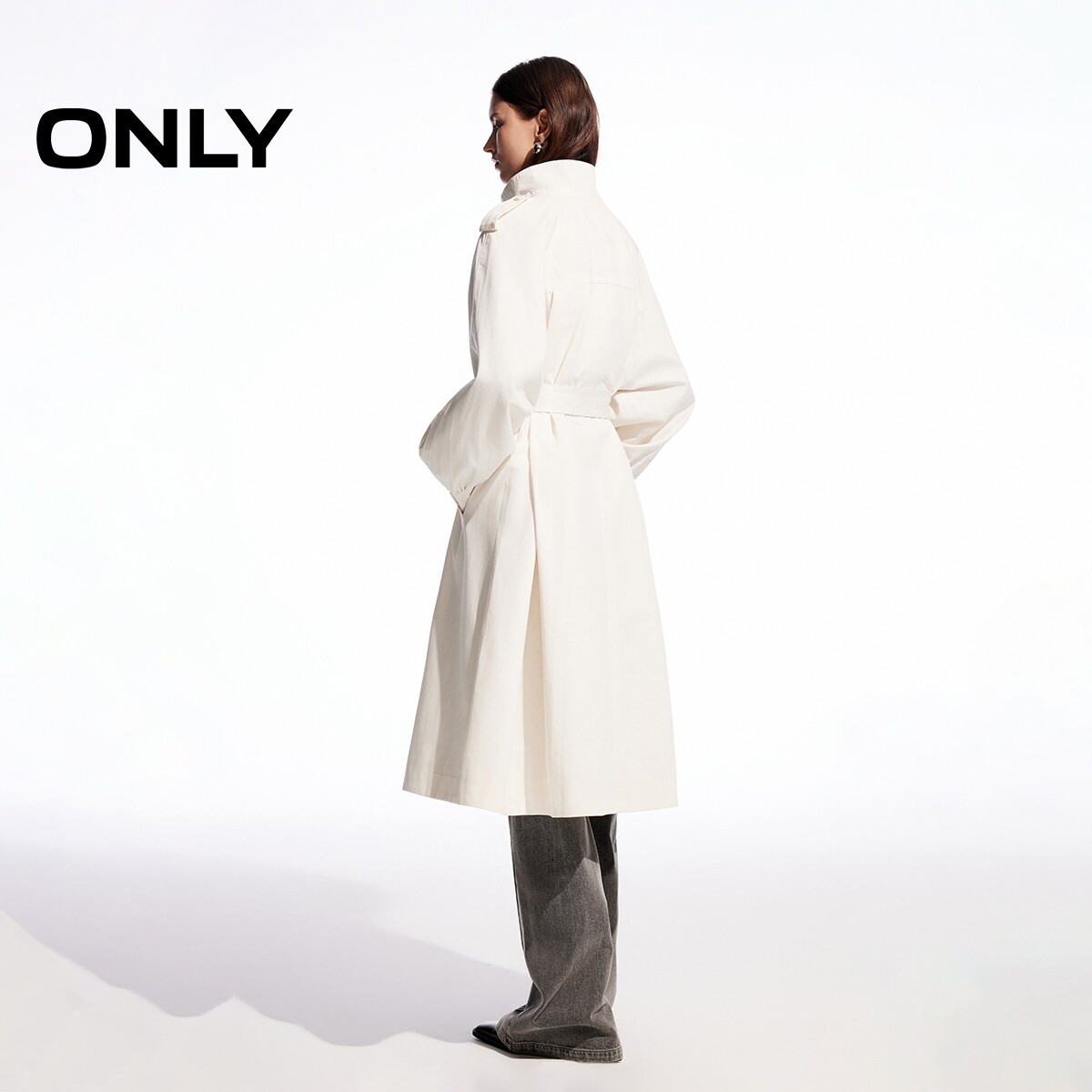 立领系带风衣女 军旅风纯色长款 126136010 新款 ONLY2026春季