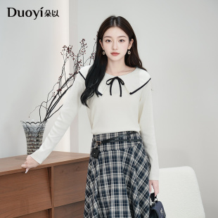 海军风娃娃领蝴蝶结系带毛织毛衣甜美显瘦针织衫 朵以2026春季 新款