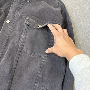 瑕疵处理 水洗牛仔布男翻领上衣做旧风大口袋休闲高街 不退不换