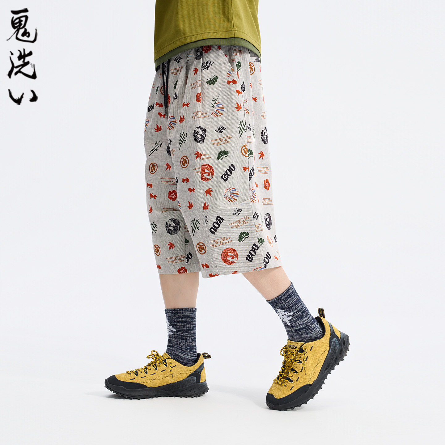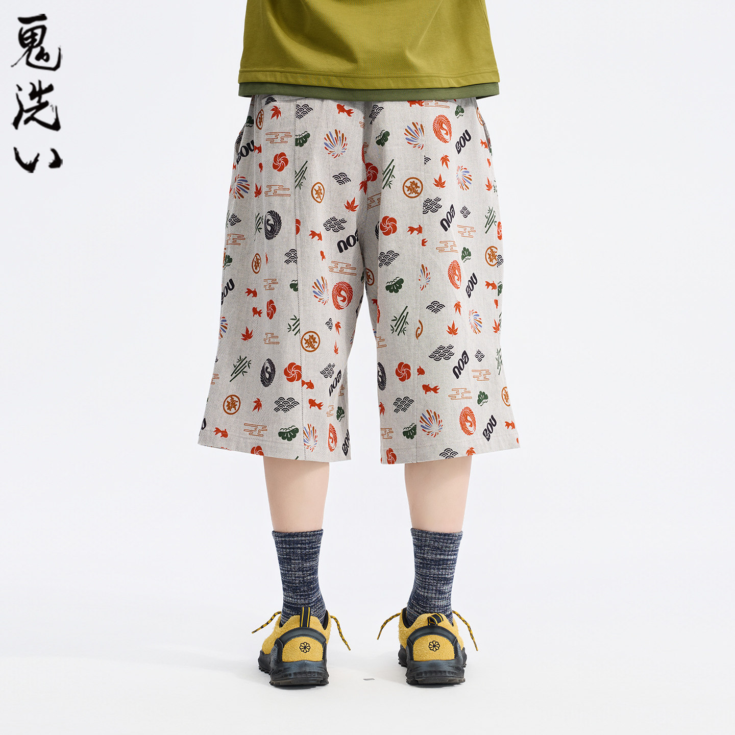 男26N0541 棒系列好运纹样满印双面牛仔7分宽裤 ONIARAI 鬼洗26夏季