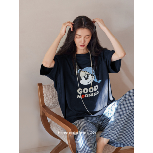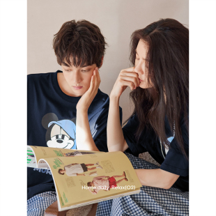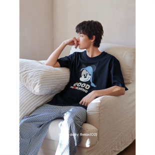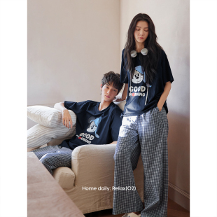 可爱卡通短袖 长裤 套装 新款 大码 薄款 男士 凉感家居服 情侣睡衣女夏季