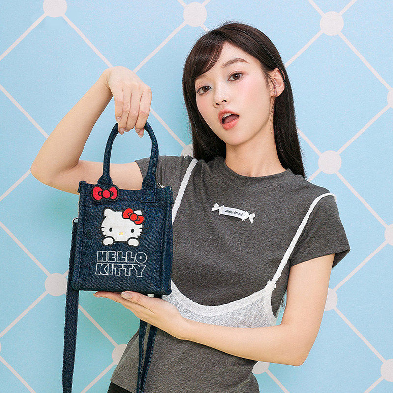 正版 大学生高中生手机包 凯蒂猫牛仔单肩斜挎包通勤手提随行包女款