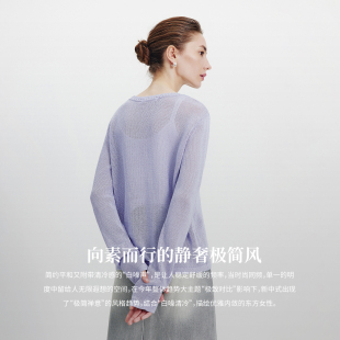 长袖 Navigare小帆船紫色圆领针织衫 宽松罩衫 打底衫 上衣 女2026春季