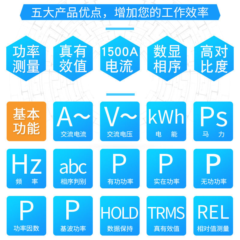 伊万厂家VC3228A 数显相序NCV验电钳形表真有效值三相功率计