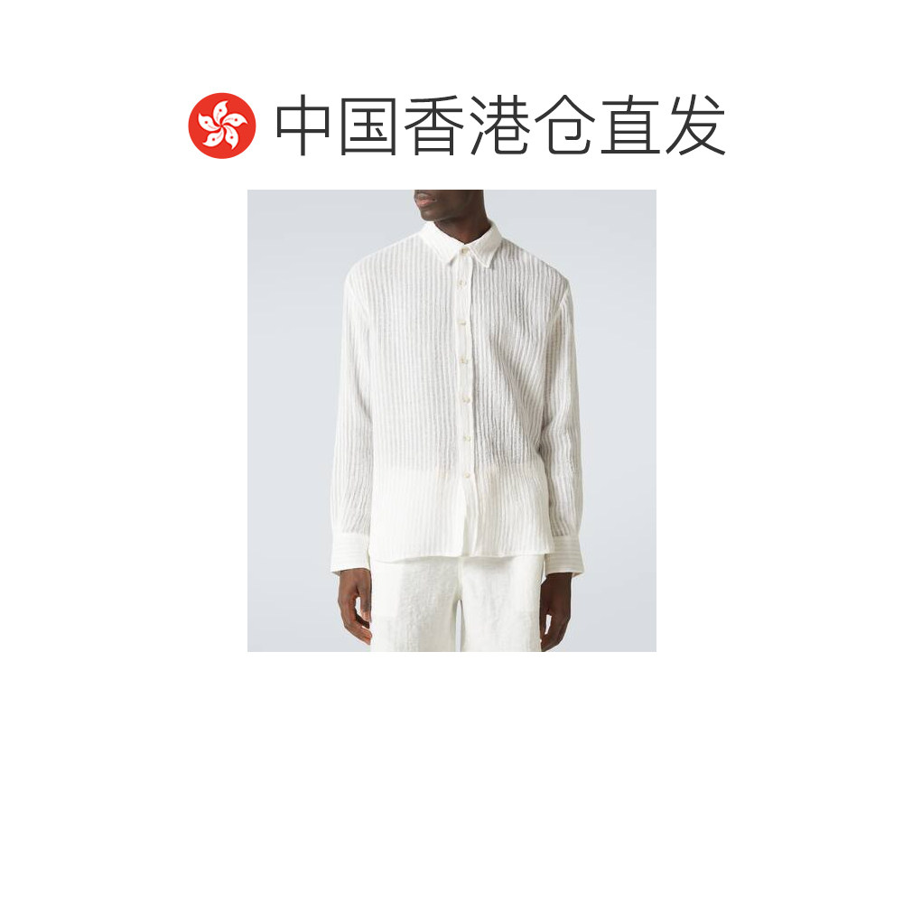 香港直邮Commas 舒适时尚 男士 white白色 亚麻 条纹衬衫 1h可退