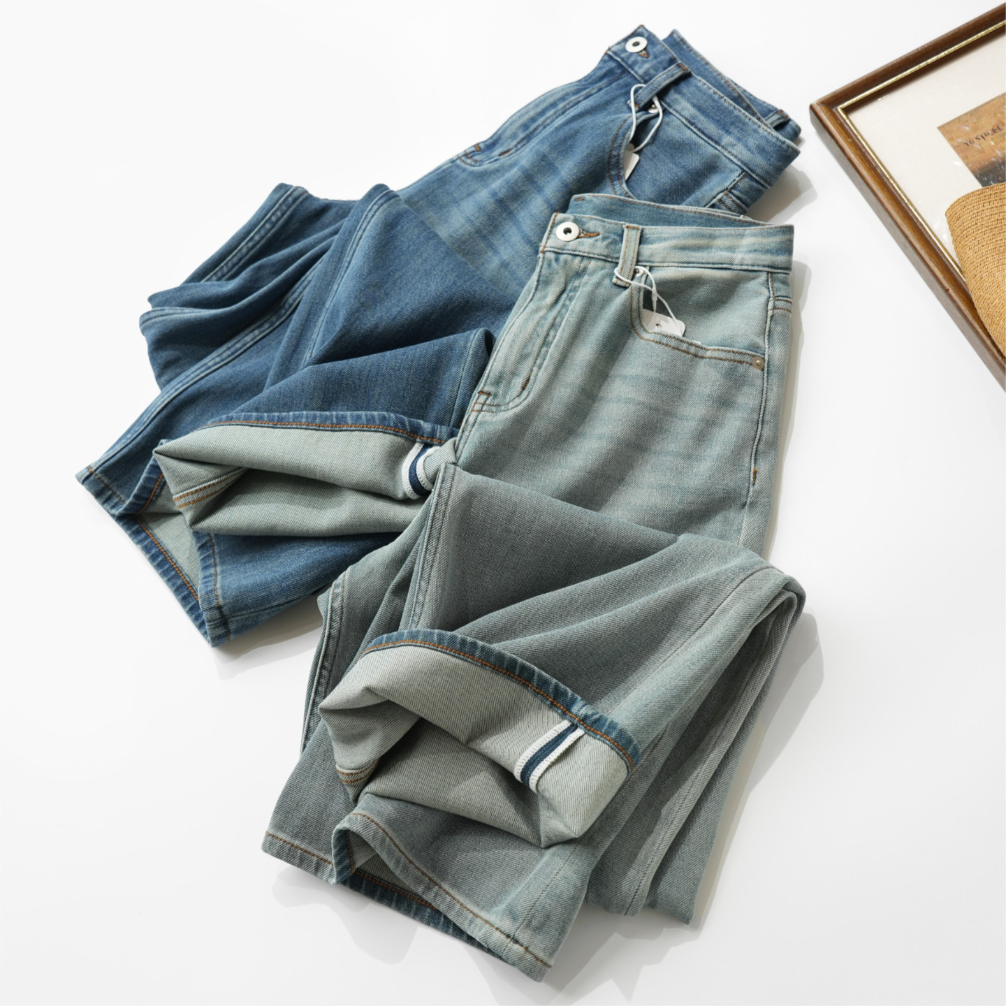 女士微廓直筒裤 女装 休闲长裤 春款 百搭高腰牛仔裤 直筒弹力软牛仔
