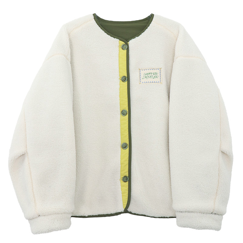 鹿与飞鸟两面穿 仿羊羔毛双色撞色包边保暖外套6340