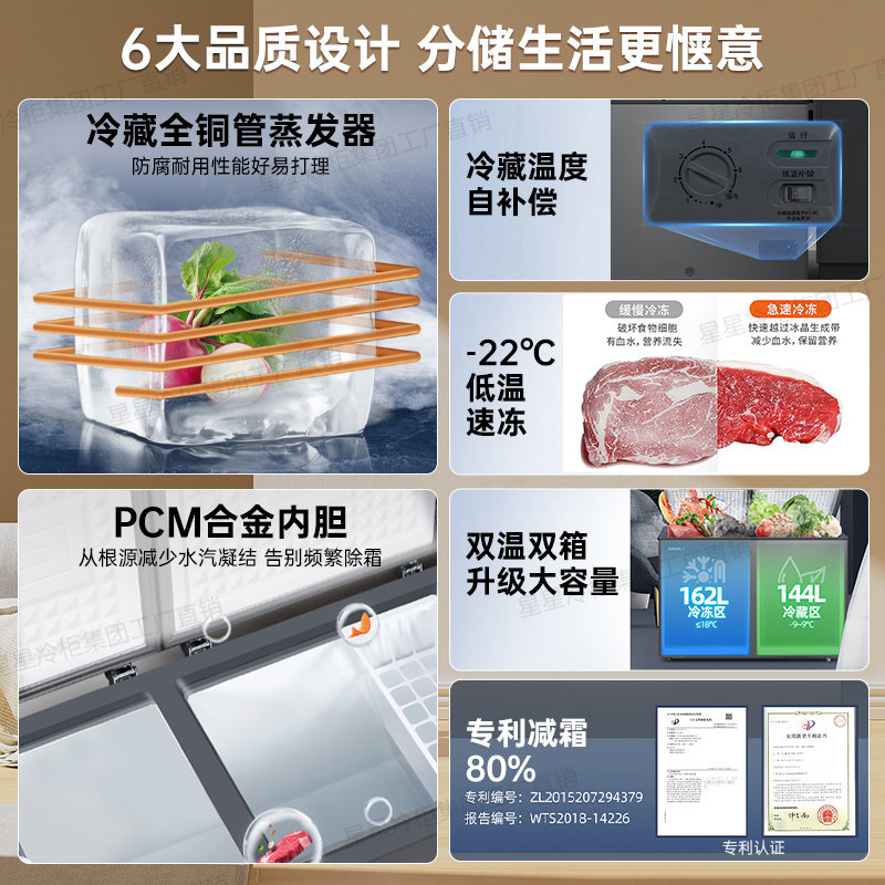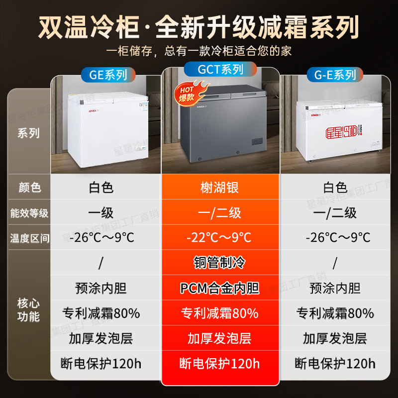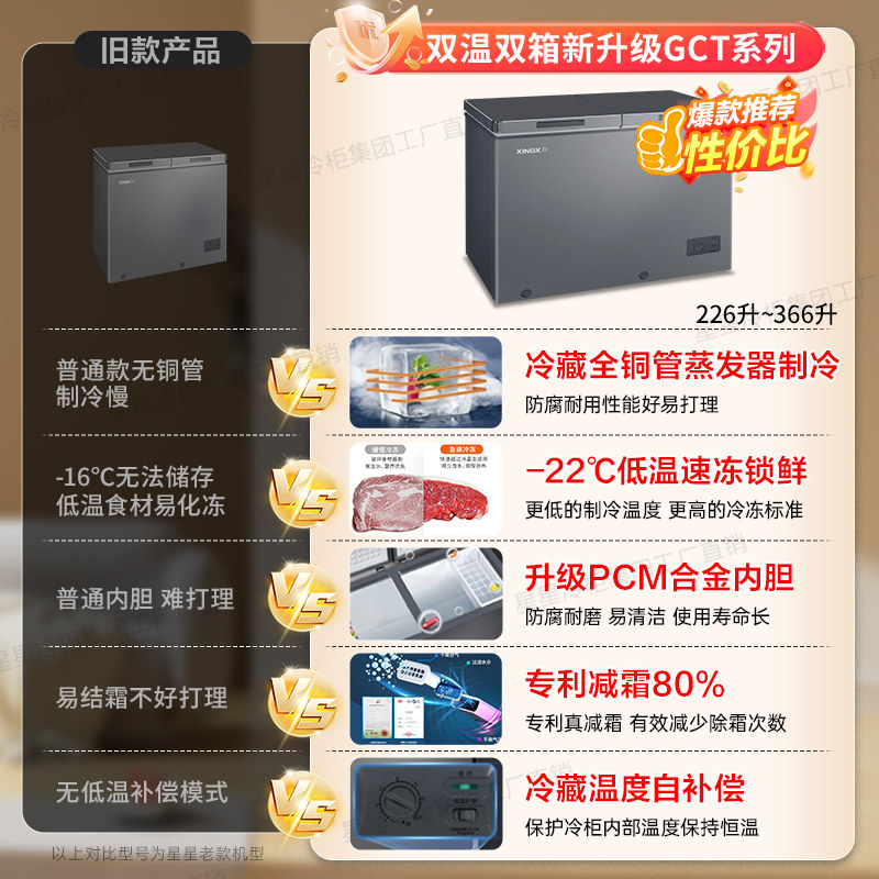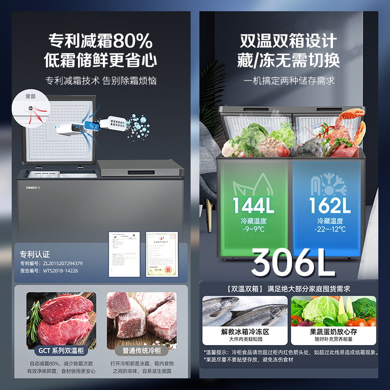 星星冰柜商用双温306 366升L双箱铜管小型家用冷藏大容量冷冻冰柜