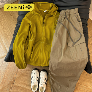 山系徒步运动套装 ZEENI 轻量化户外防泼拒水软壳连帽外套女休闲裤