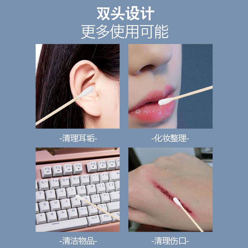 U先试用 双头棉签100支挖耳屎清洁涂药涂伤口圆头棉签儿童挖耳勺