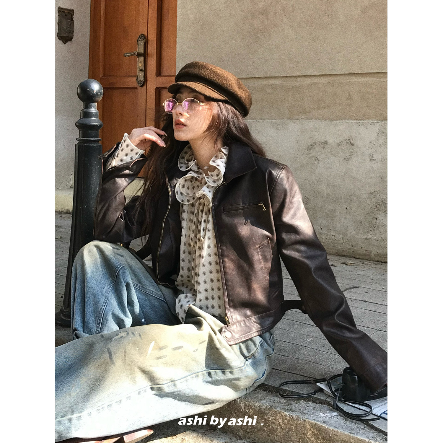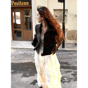 复古机车夹克女显瘦短款 美式 休闲PU皮衣外套春 怀旧片尾 大于诗集