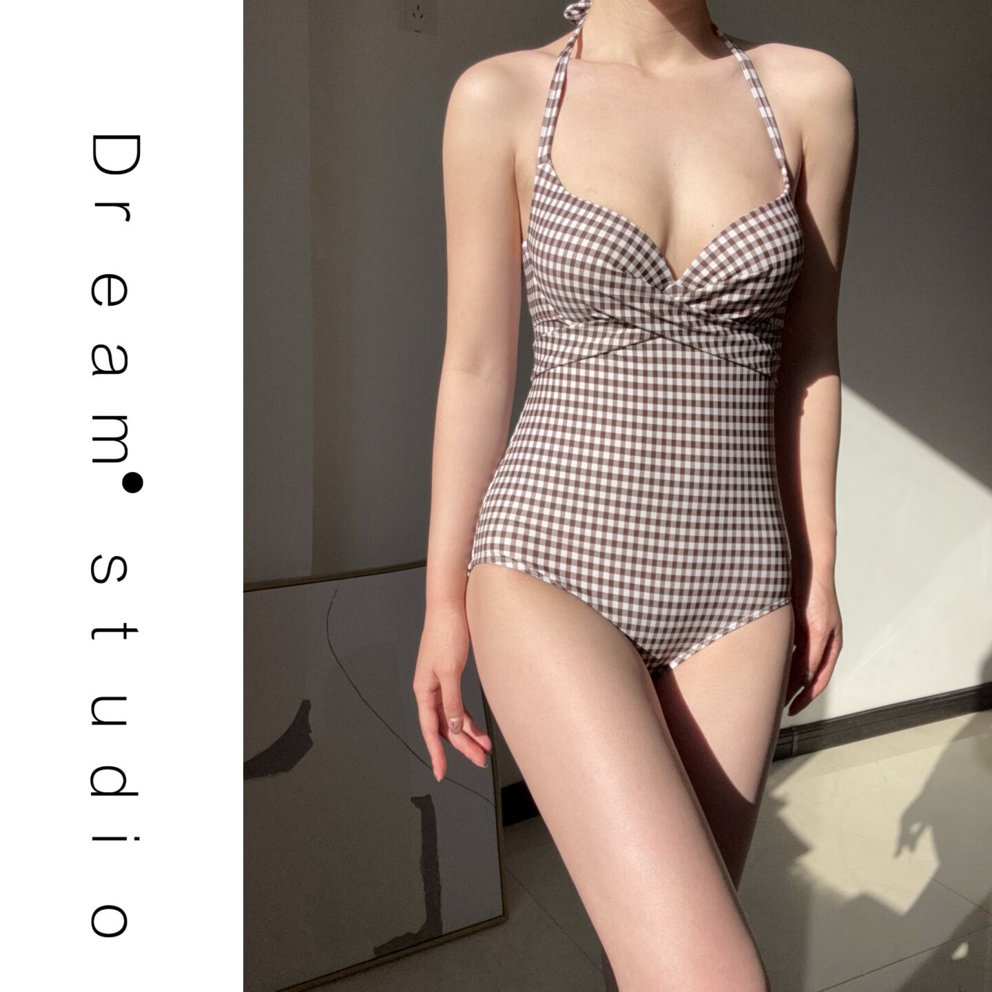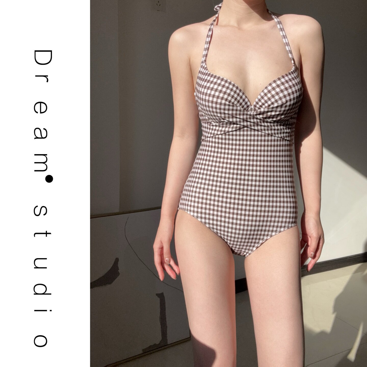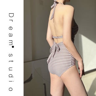 钢托聚拢温泉 罩衫 蜜Dream泳衣女2026新款 性感千鸟格吊带连体泳装