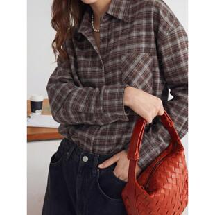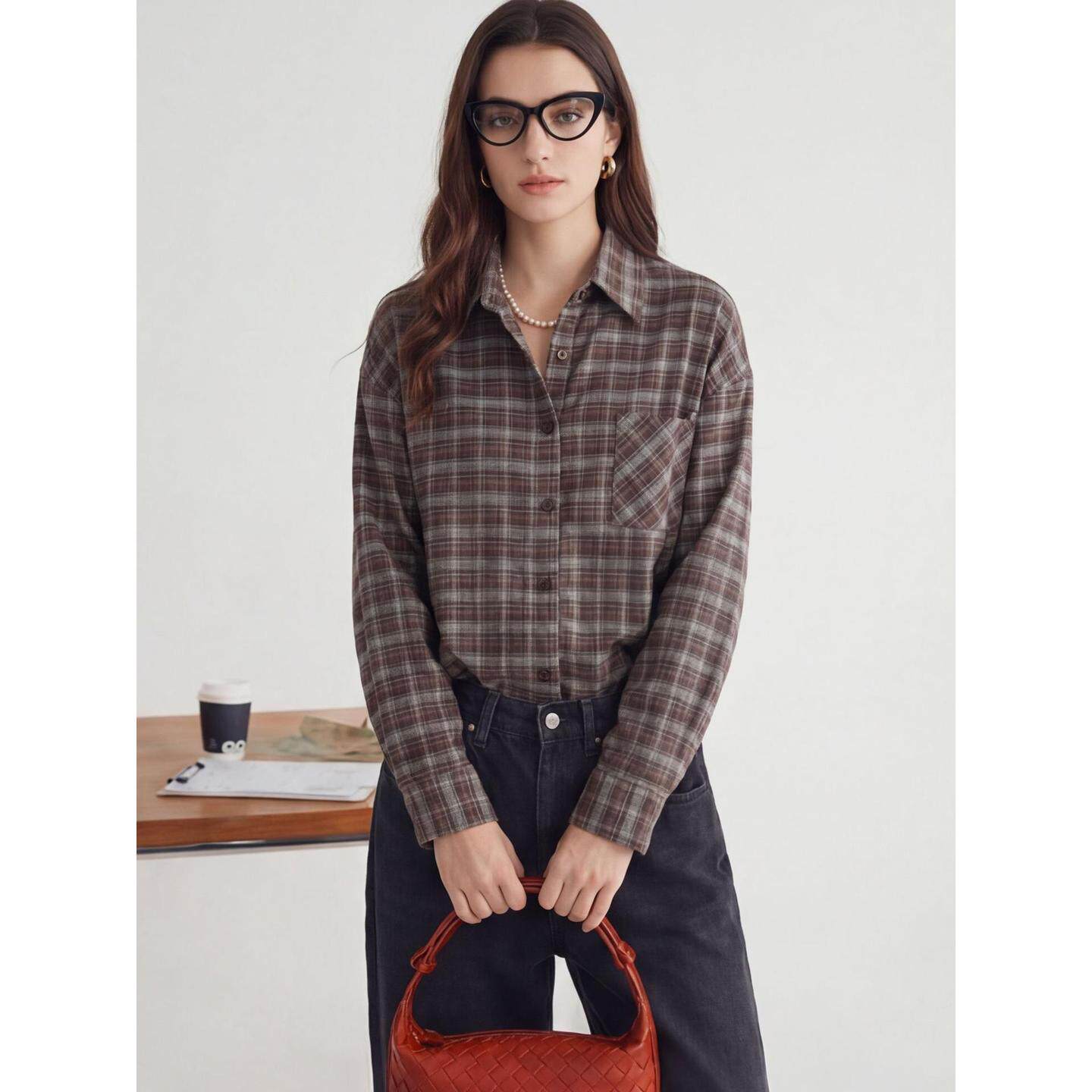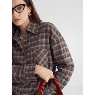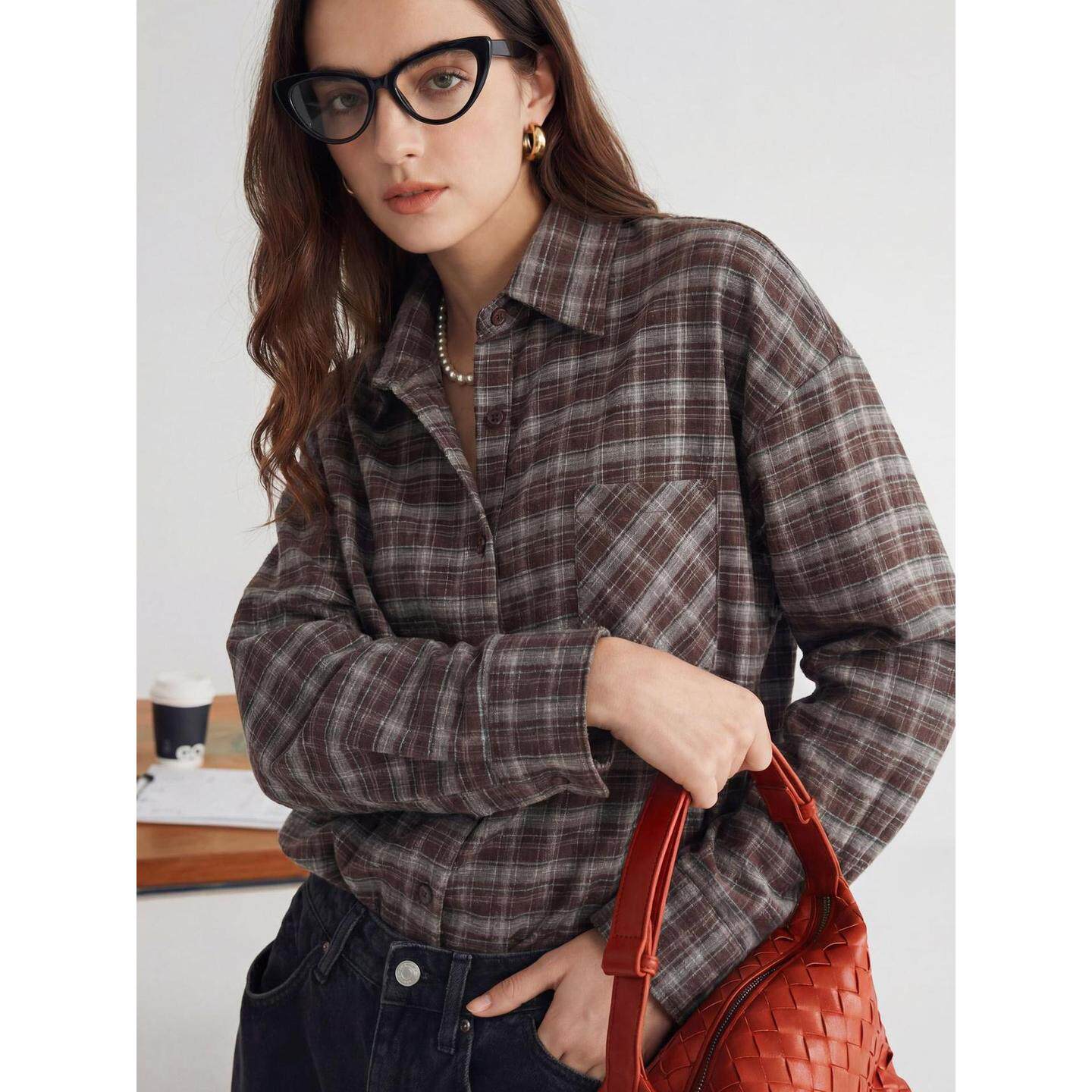House 复古叠穿长袖 百家好磨毛格子衬衫 新款 衬衣 女2026春季 Basic