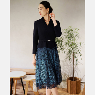 假两件A字裙连衣裙P51197E5071N0 蓝色时尚 皮尔卡丹女26年春季 新款