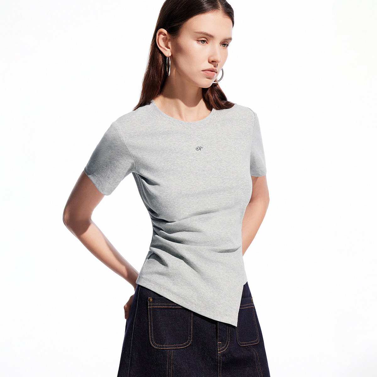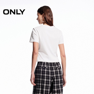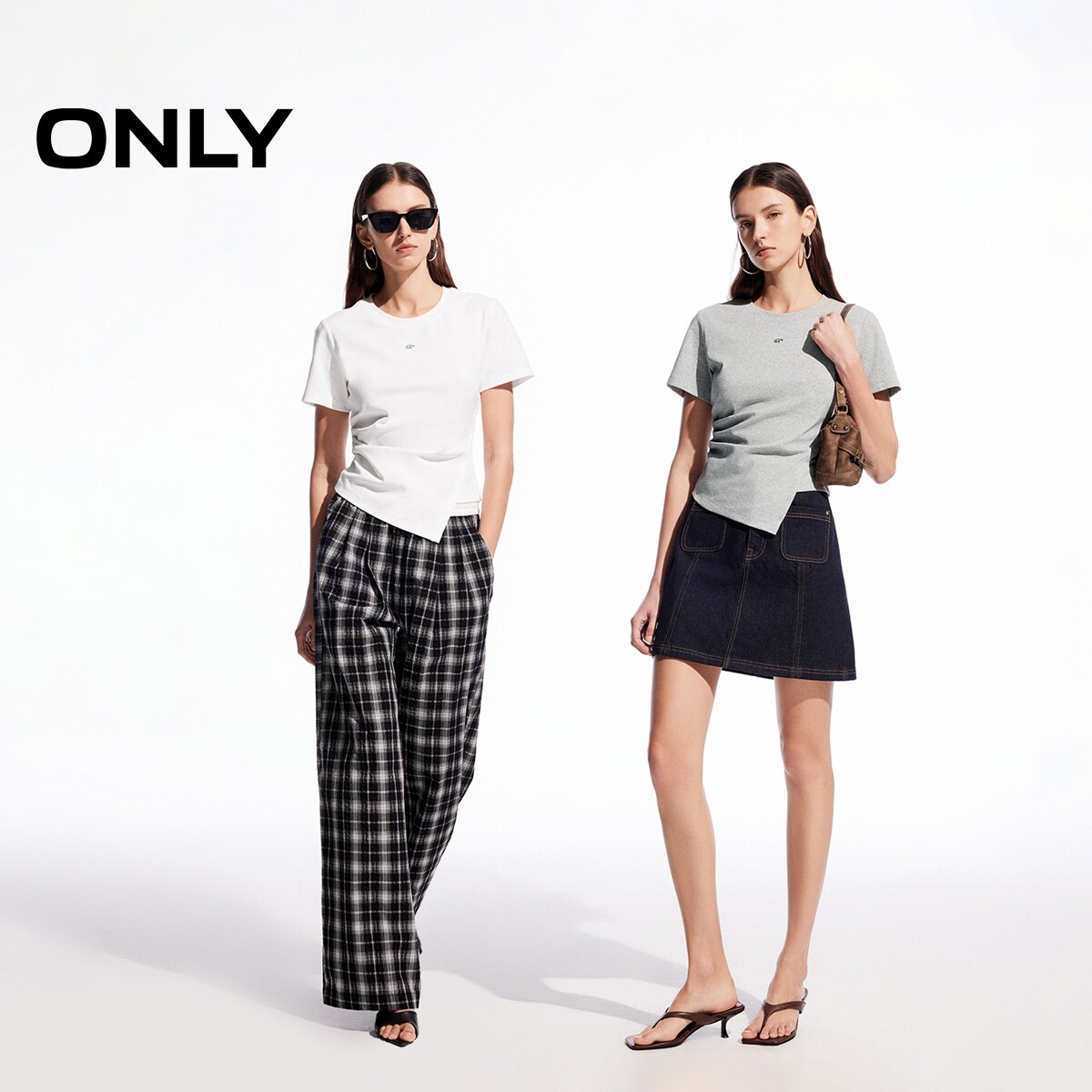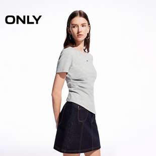 饰不规则下摆短袖 上衣休闲风金属装 正肩T恤女 新款 ONLY2026春季