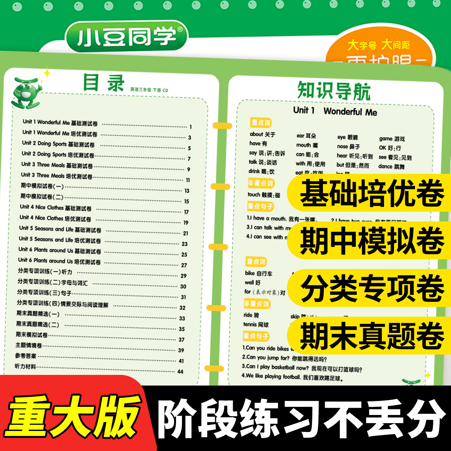 社教材同步练习题册一课一练同步教材 期中期末测试卷重庆大学出版 2026小豆同学全优卷重大版 小学英语试卷三四五六年级下册同步单元