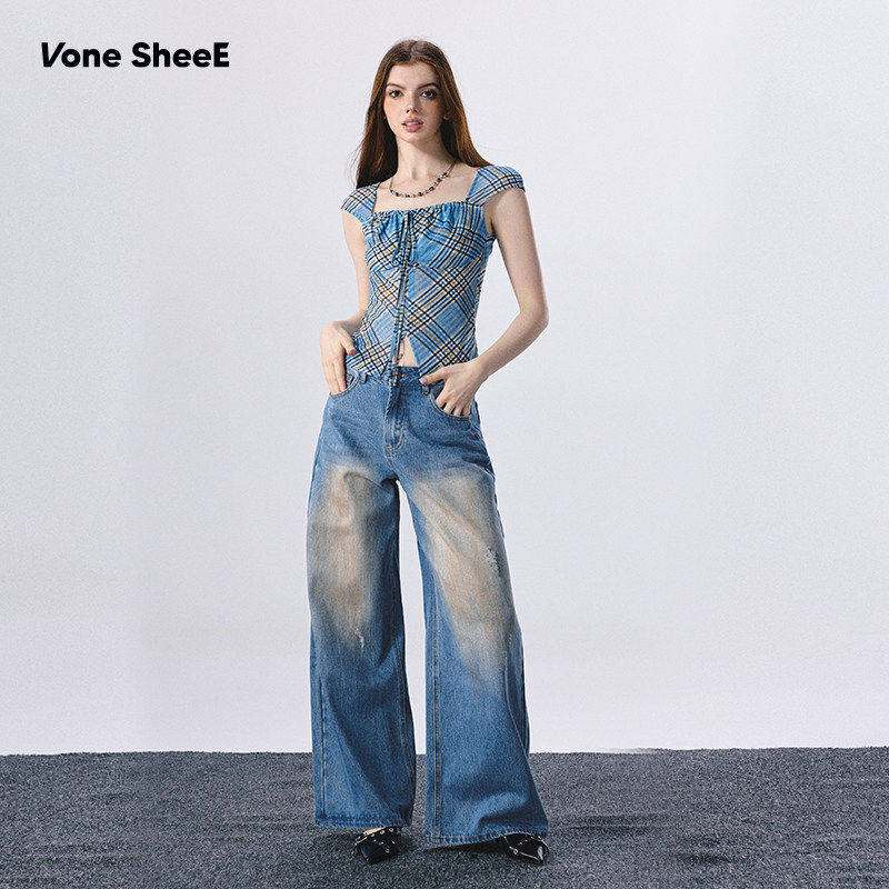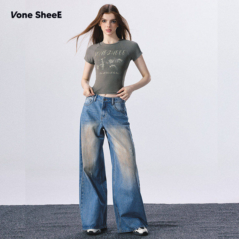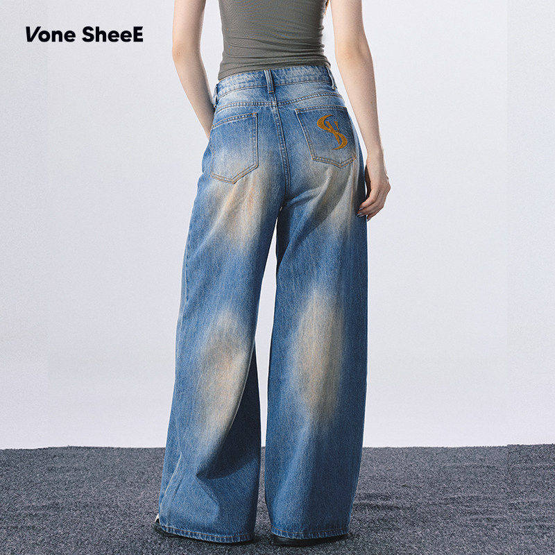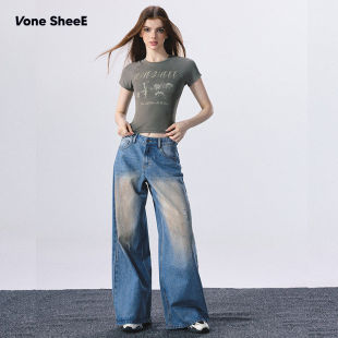 昕怡专享 复古水洗牛仔裤 脏脏裤 SheeE 女 牛仔很忙Vone