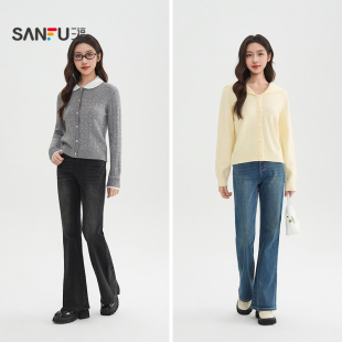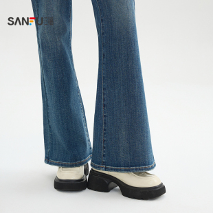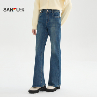 时尚 春季 气质微喇裤 复古喇叭裤 514405 三福牛仔长裤 子女装 2026新款