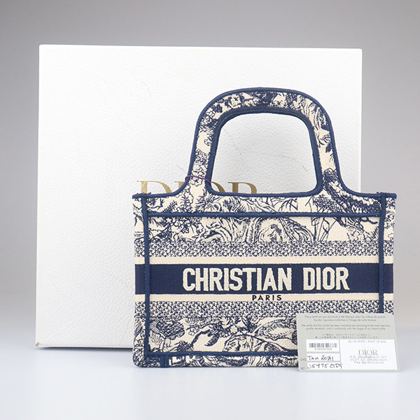 中古「9新」DIOR迪奥BOOK TOTE蓝色茹伊印花迷你手提包S5475ZTDT