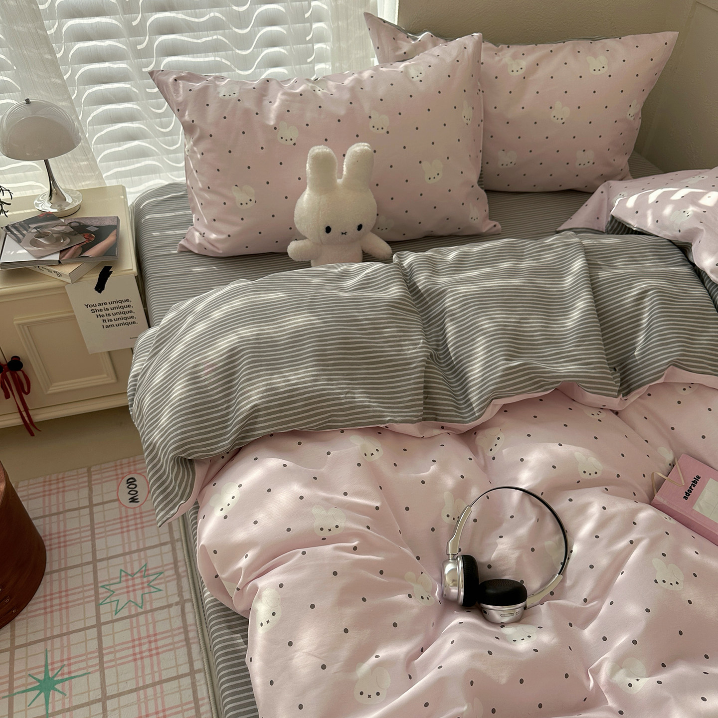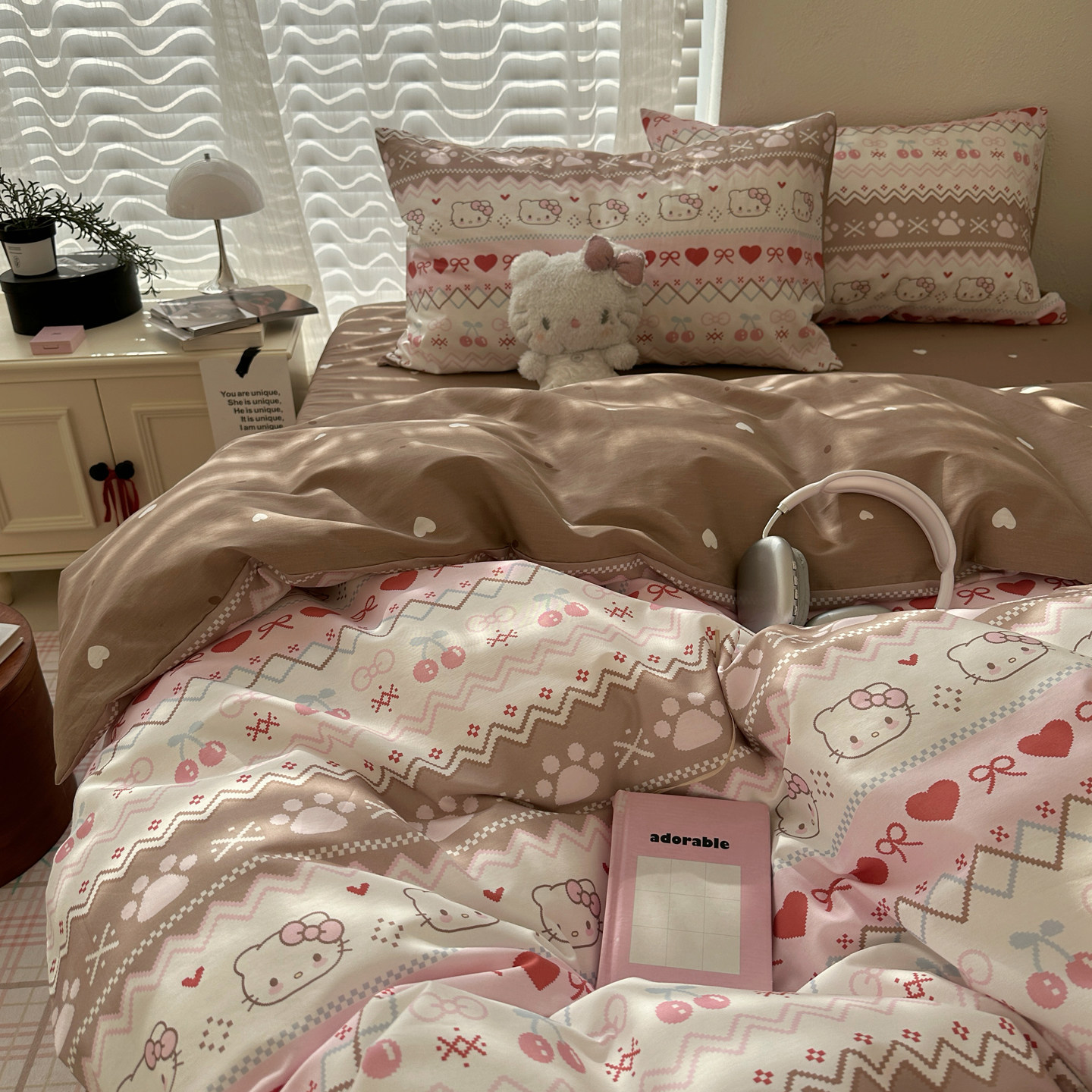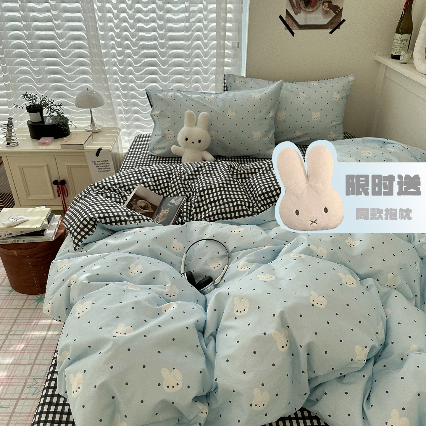 晚安猫INS风纯棉印花四件套学生宿舍亲肤少女三件套床品