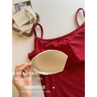馨帮帮Bra 内搭打底背心 本命年红色碎花波点格纹吊带女带胸垫修身