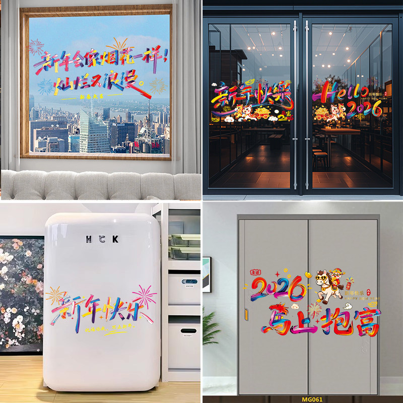 2026新年快乐汽车贴马年过年春节福字车窗花后档玻璃贴纸电动车贴