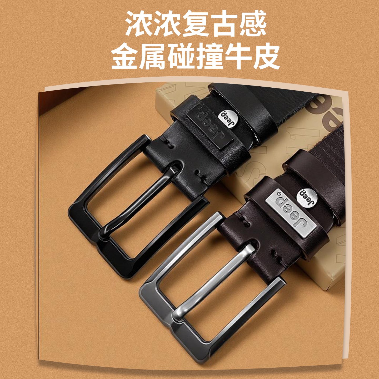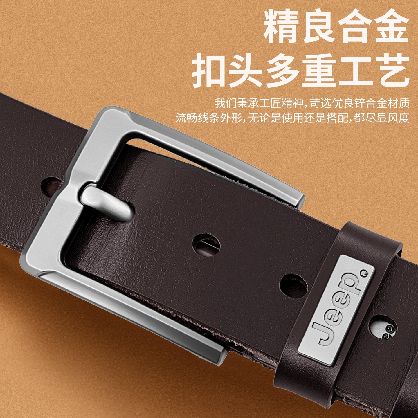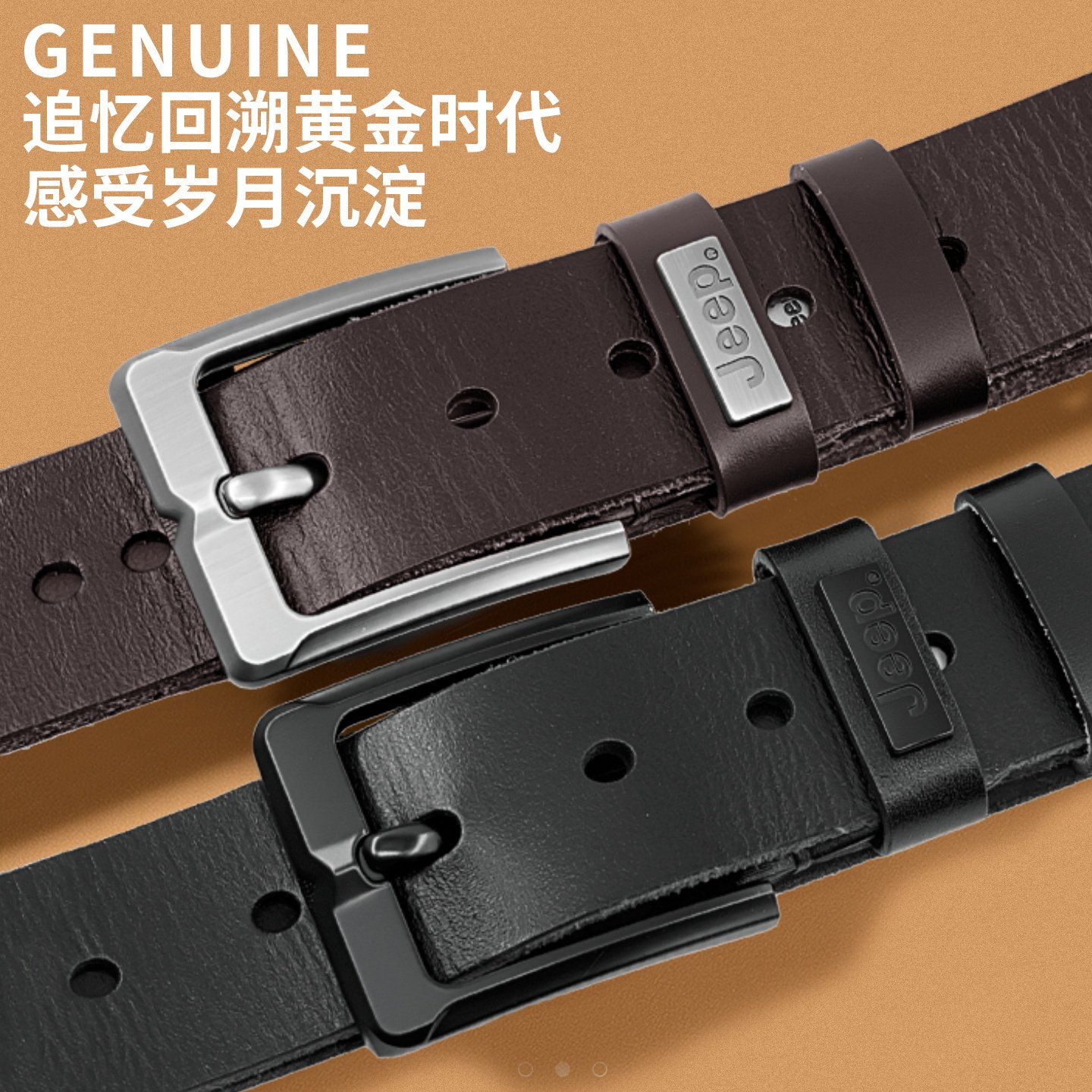 Jeep吉普真皮纯牛皮腰带男休闲手工皮带男真皮针扣正品 带潮 复古裤