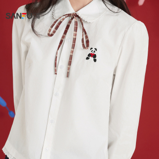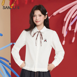 上衣女装 三福白色衬衫 花边娃娃领衬衣刺绣长袖 春季 517519 2026新款