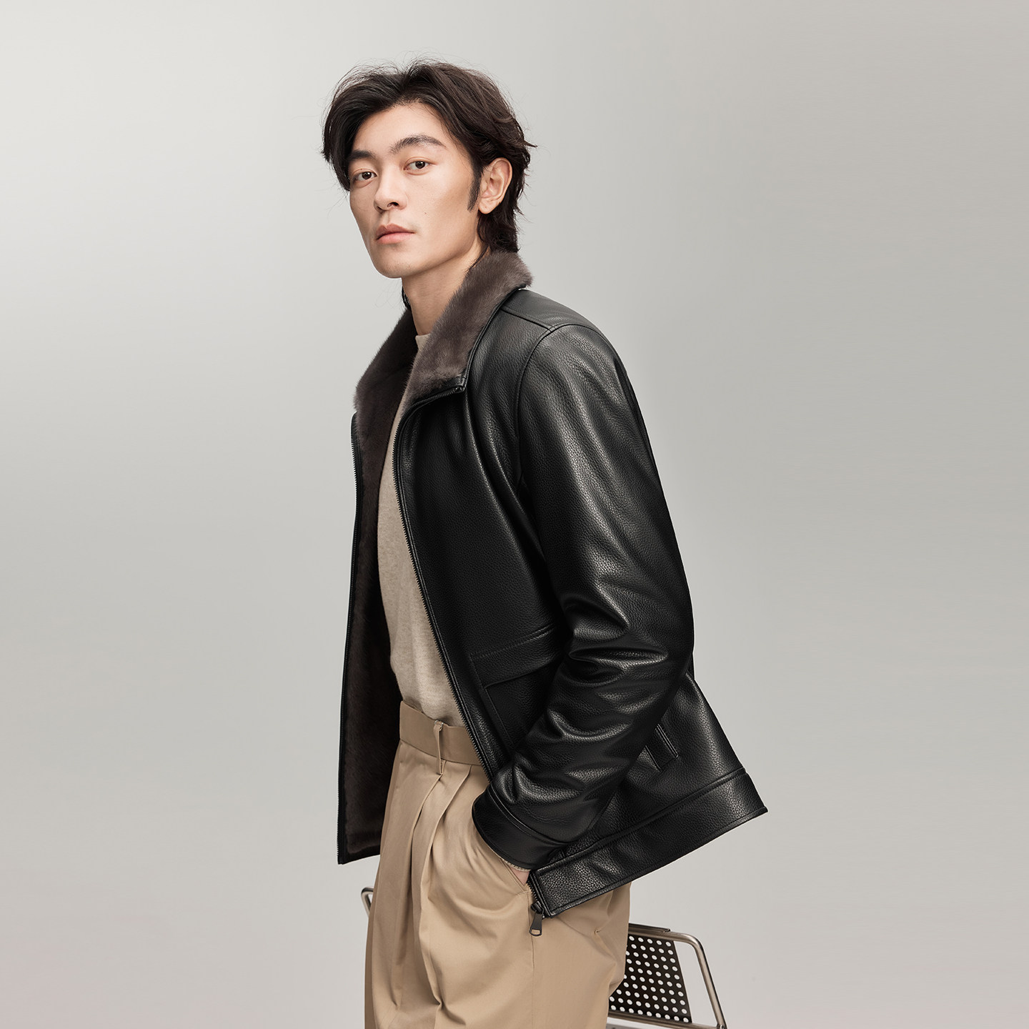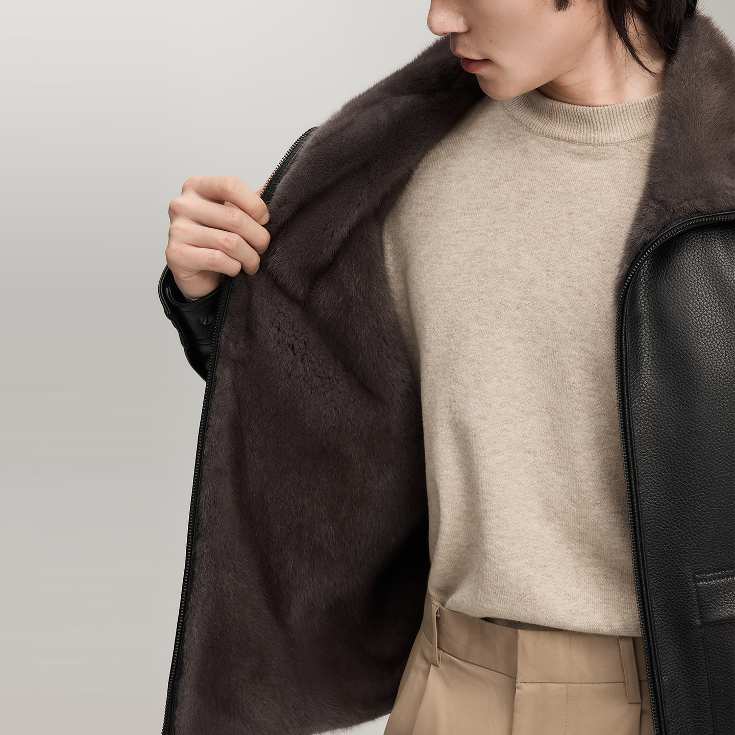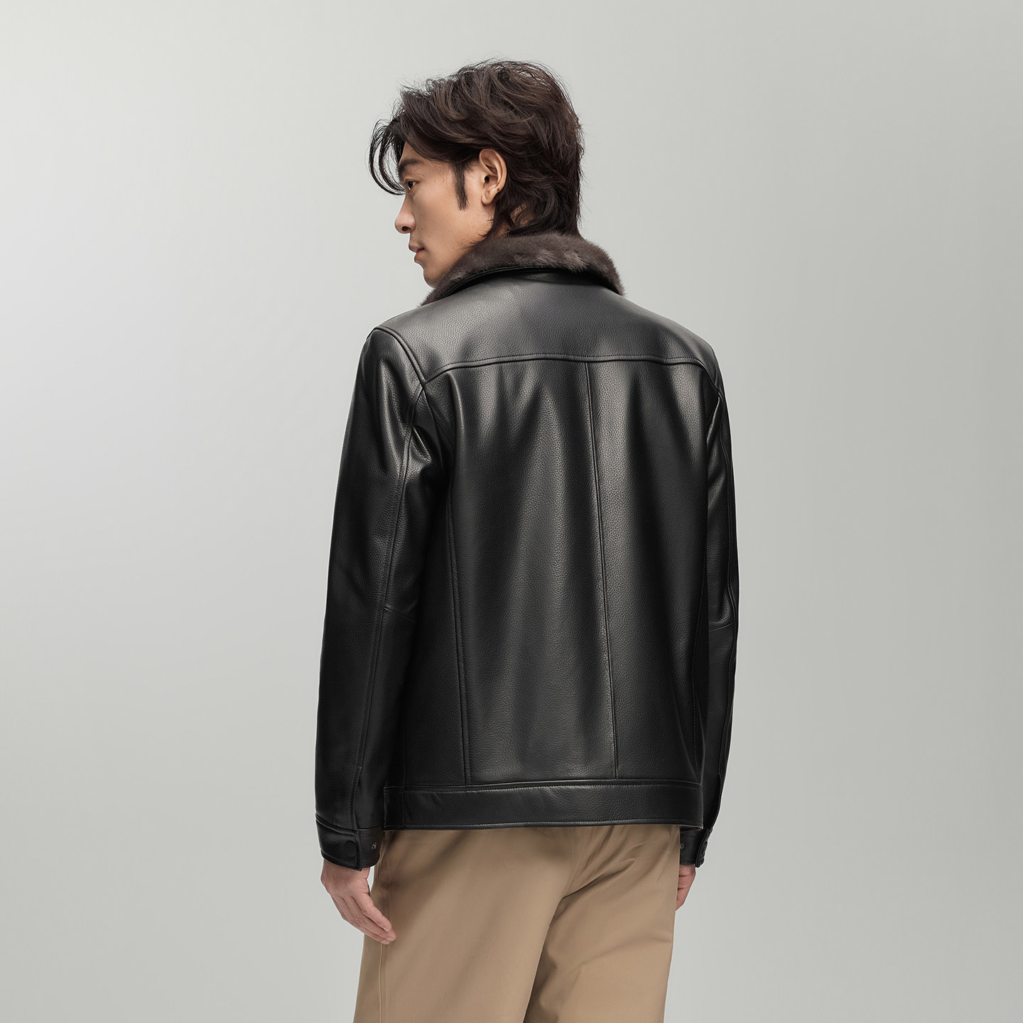 头层绵羊皮商务通勤真皮皮衣男雪豹水貂皮夹克 26冬季 专柜同款 新品