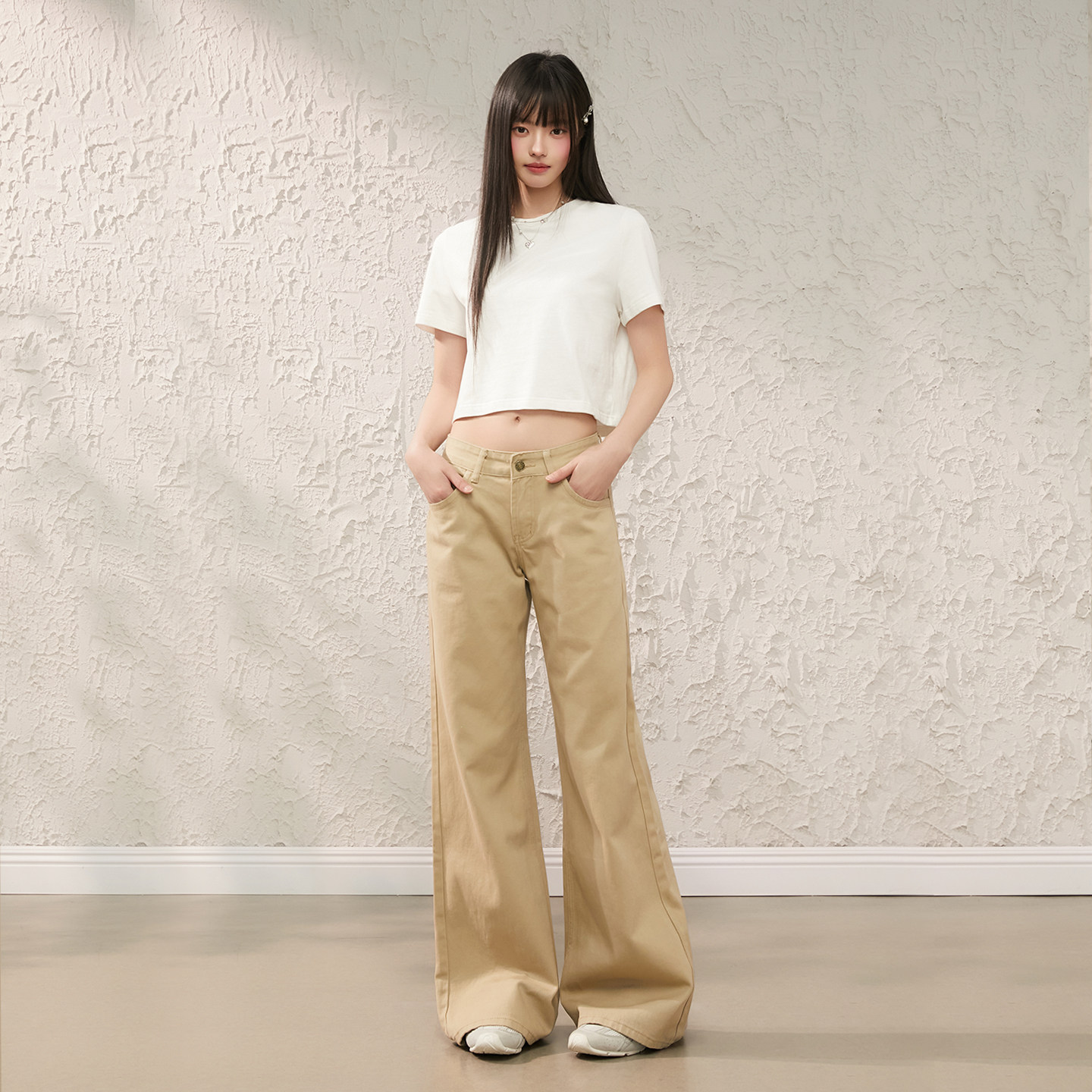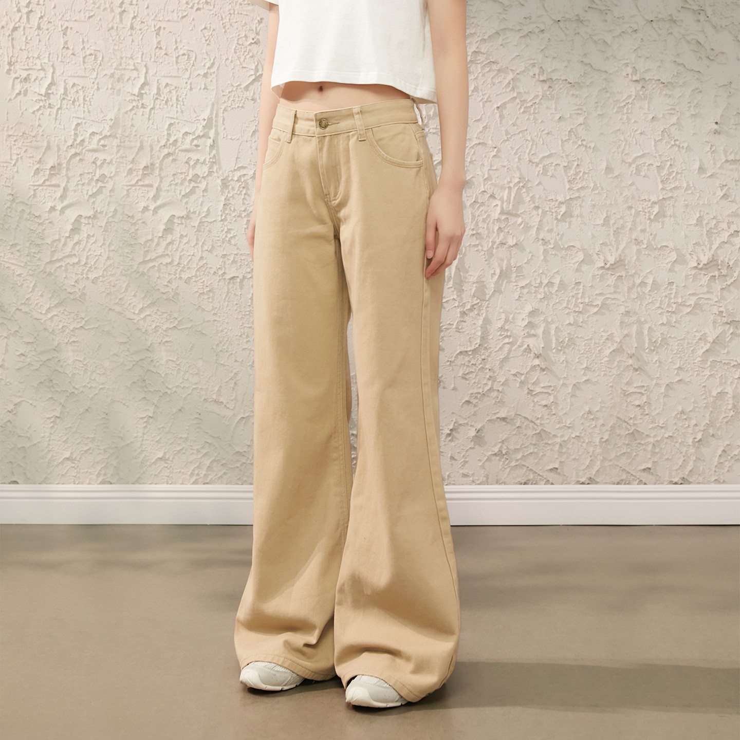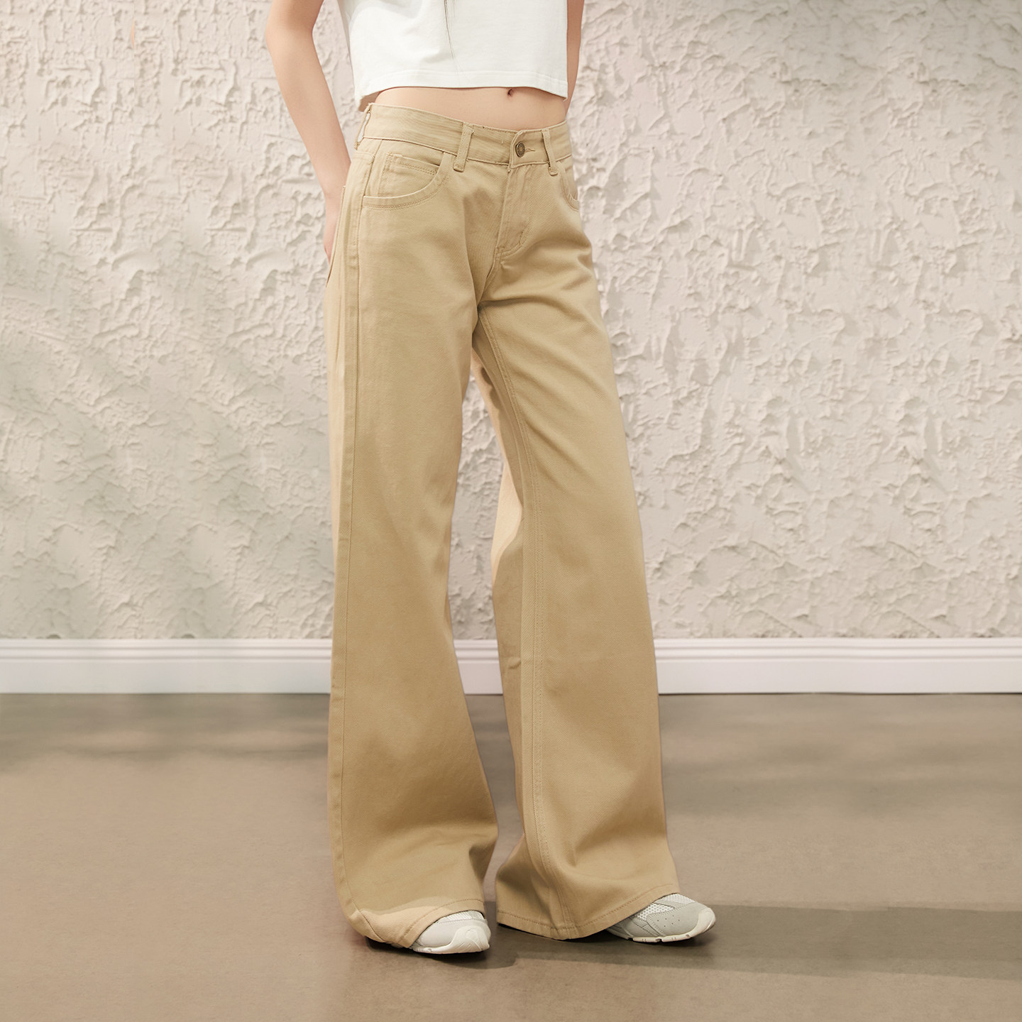 Prince卡其色微喇休闲牛仔裤 长裤 女春季 显瘦宽松直筒裤 新款 King