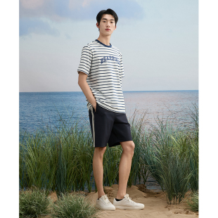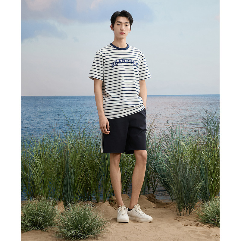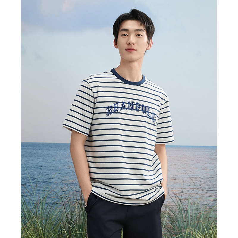 航海美拉蓝条纹设计时尚 男士 BEANPOLE滨波 简约宽松T恤 3A抗菌