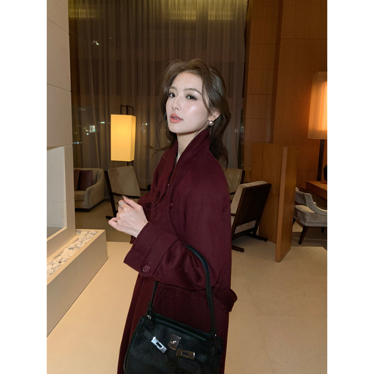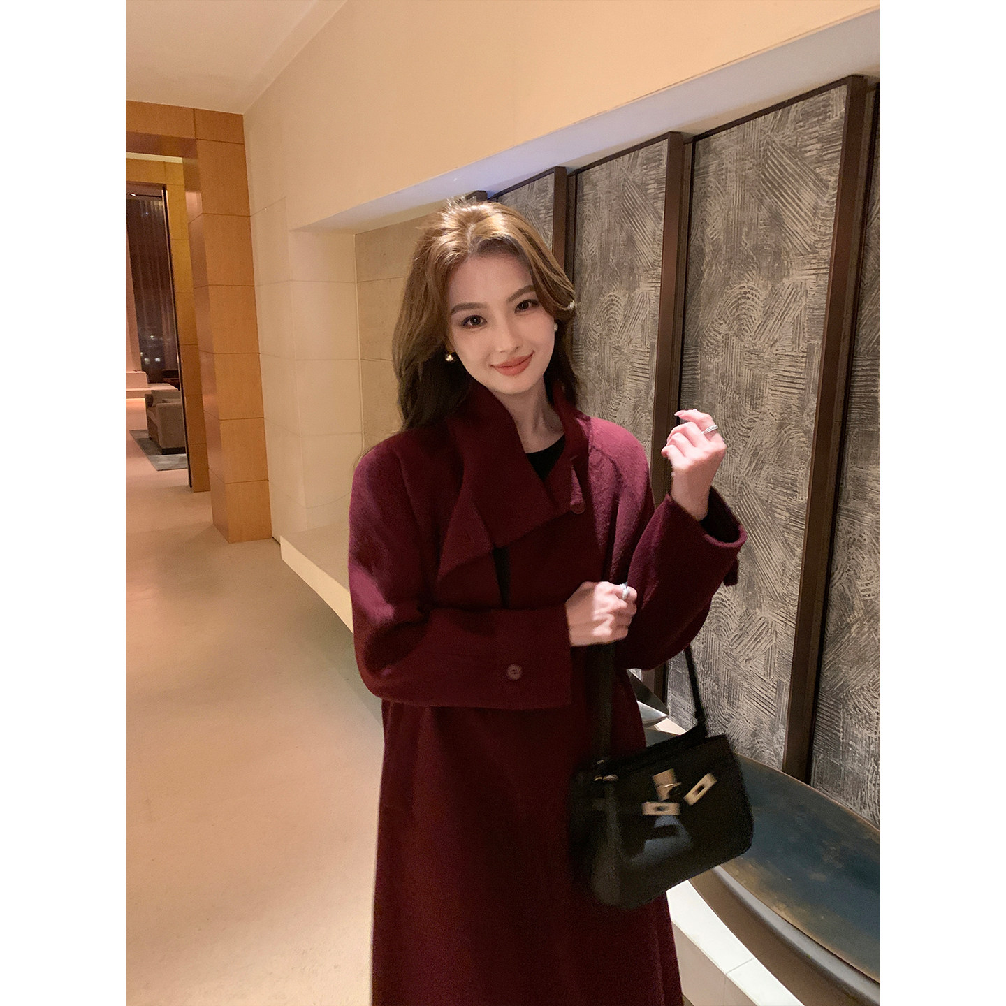 收腰毛呢外套 1OO羊毛双面呢大衣女气质中长款 Maven Lin精英女绅