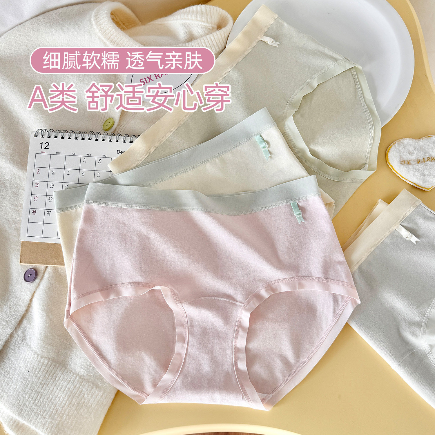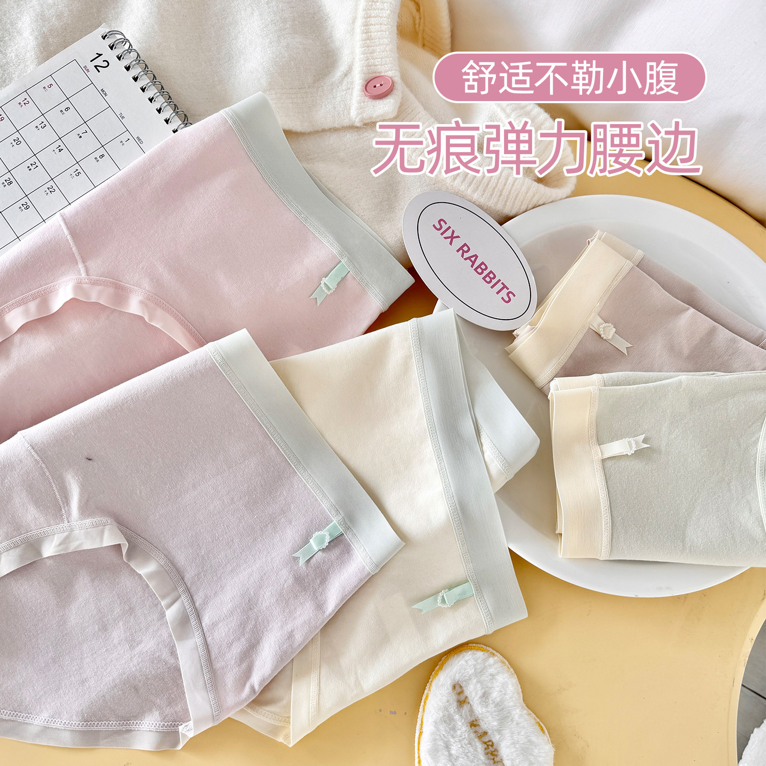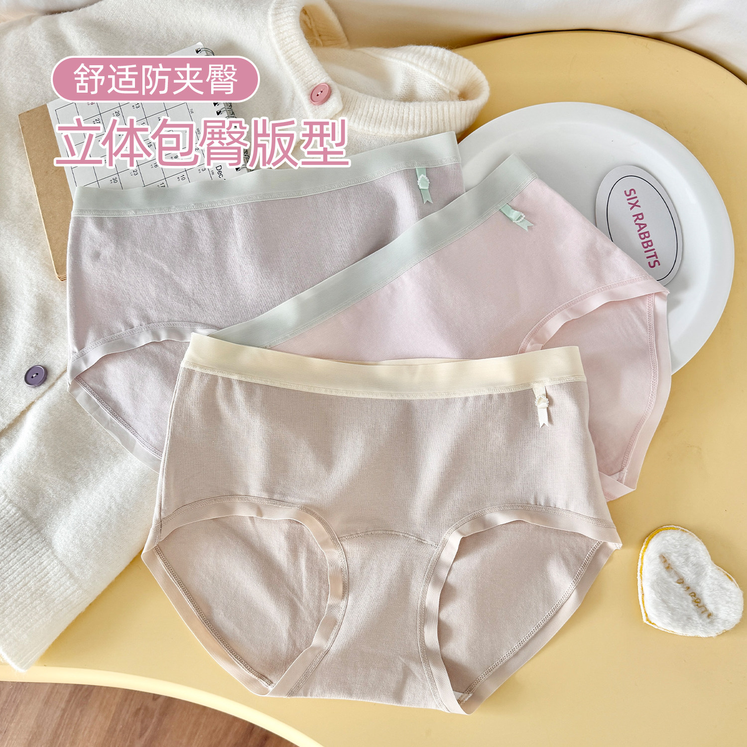 六只兔子A类棉内裤 女7A抑菌纯棉底裆包臀中腰撞色腰头女士三角裤