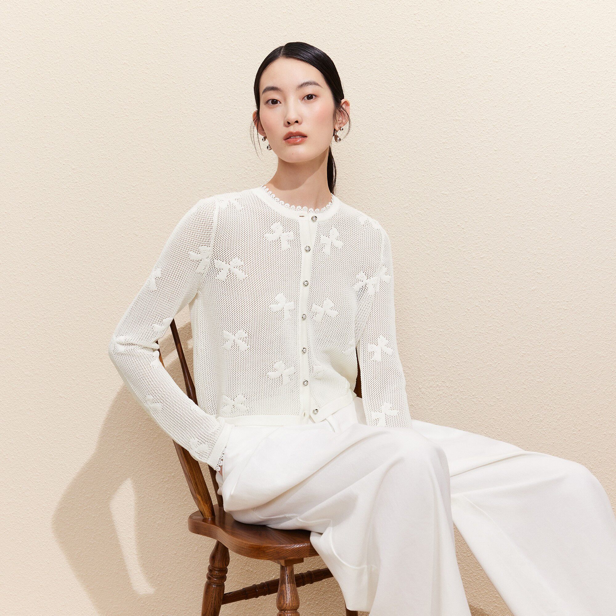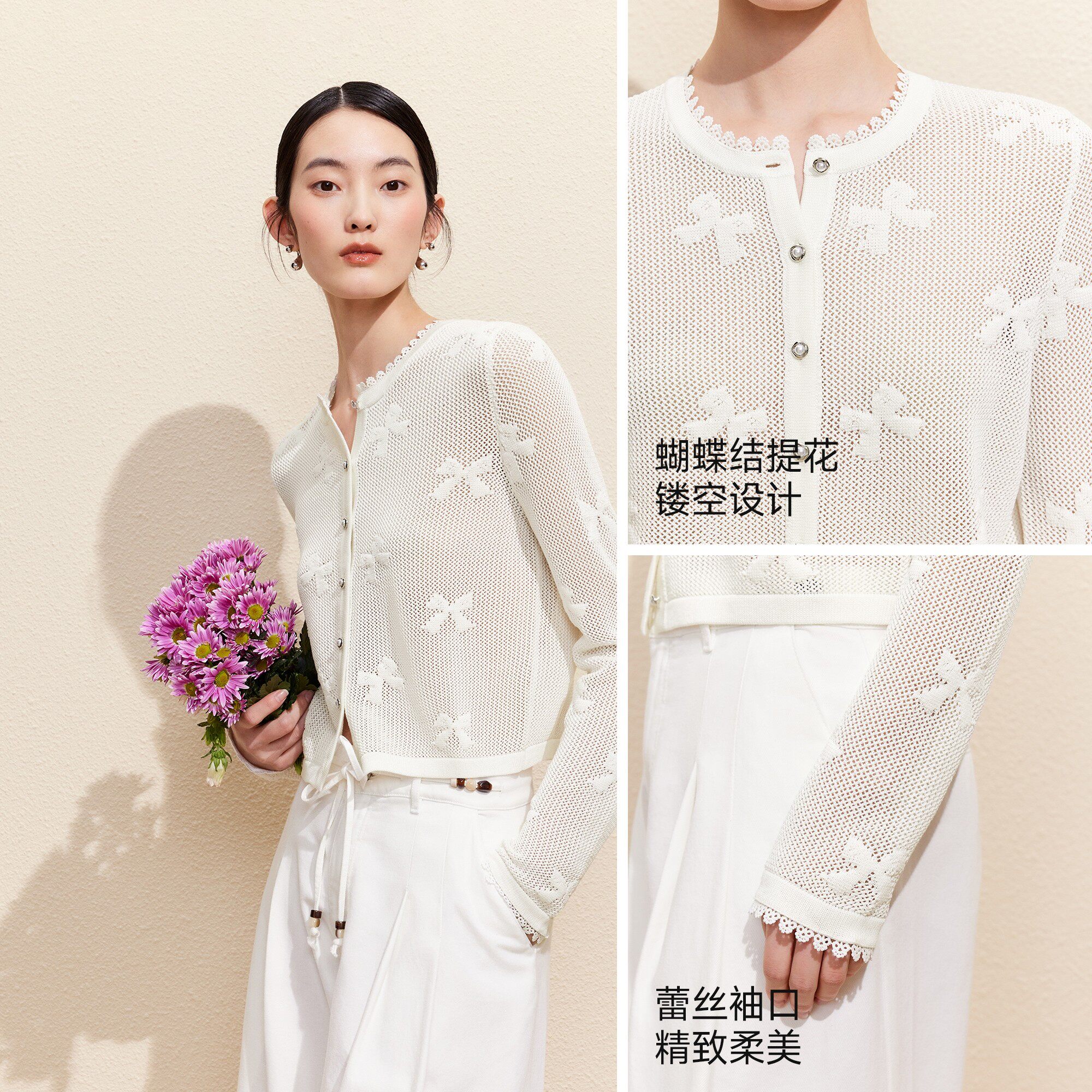 蝴蝶结提花蕾丝镂空针织开衫 Vero 新款 女2026夏季 简约 Moda针织衫