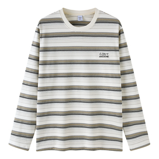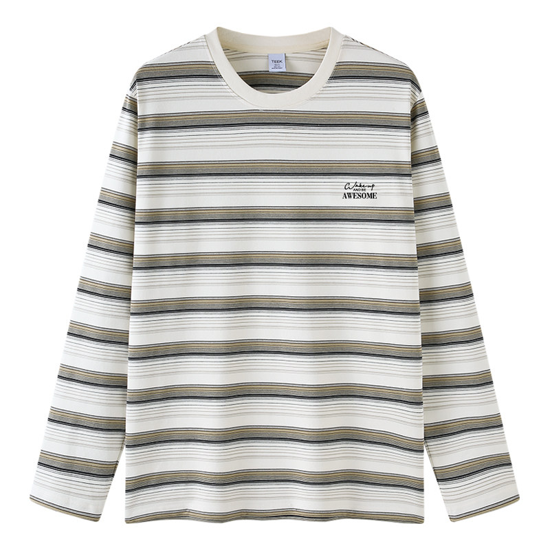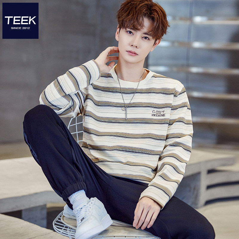 新款 大学生复古潮牌春装 打底衫 T恤条纹拼色 内穿上衣 长袖 TEEK春季