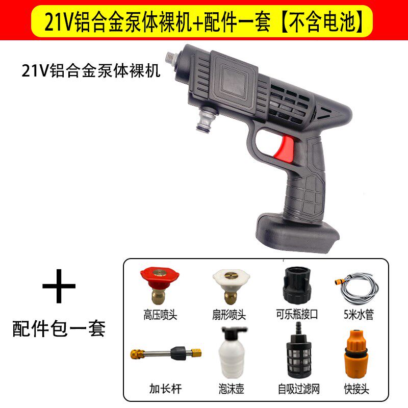 不带电池铝合金尼龙水泵无线高压洗车机水枪锂电池家用高压枪裸机