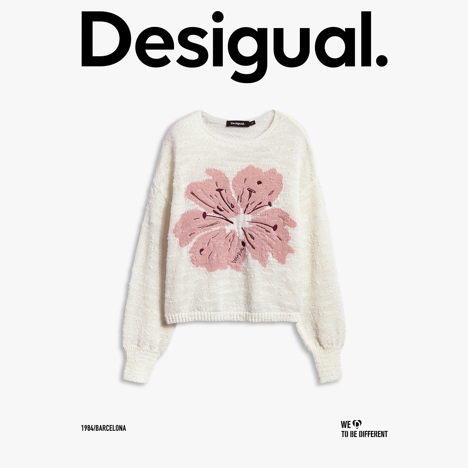 针织衫 Desigual26春夏新品 宽松肌理樱花提花米色女式