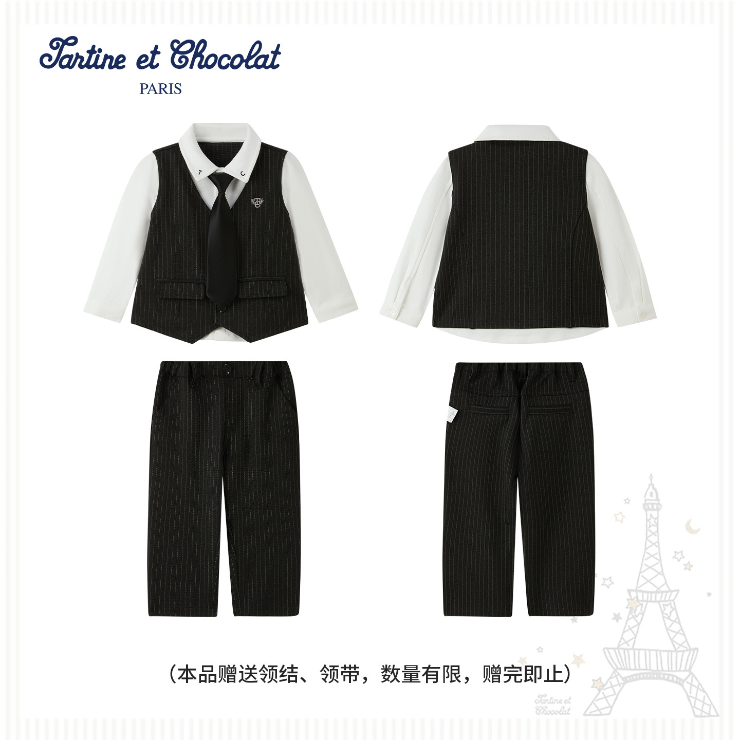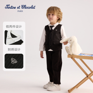 两件套装 tartineetchocolat法国巧克力童装 长裤 新男童衬衫 26春季