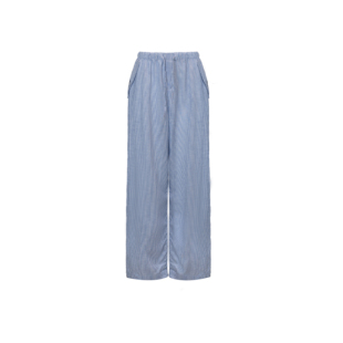 清凉显瘦休闲宽松直筒裤 Bettychow 蓝白条纹水洗亚麻阔腿裤
