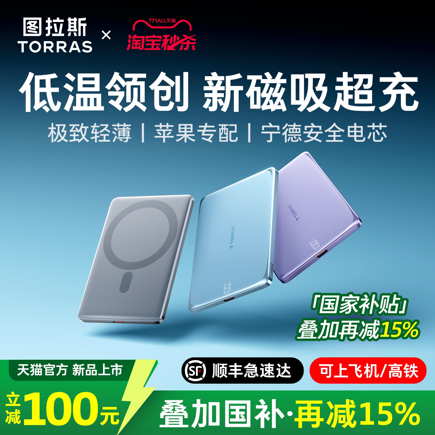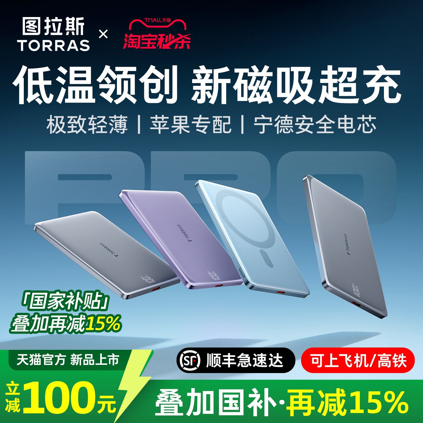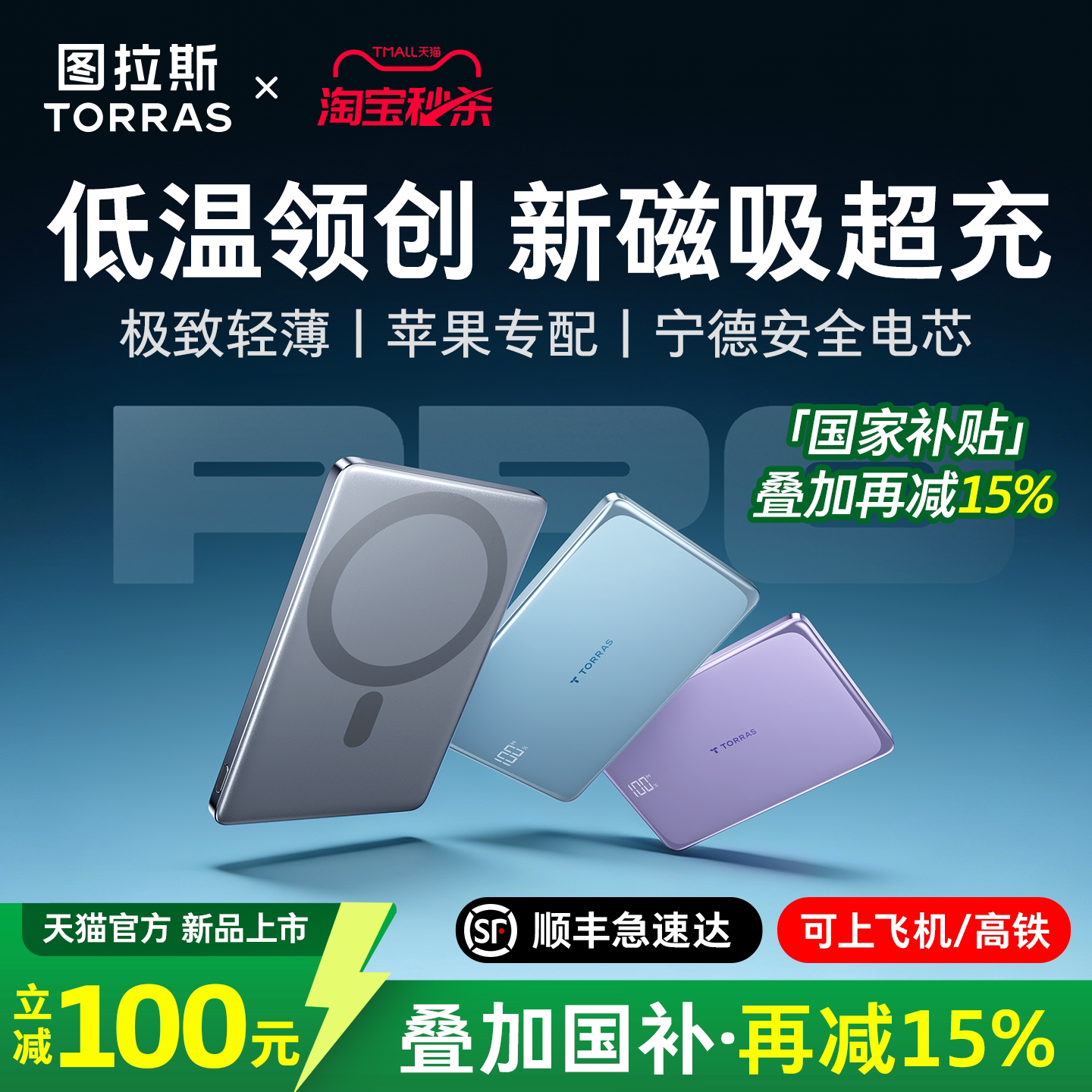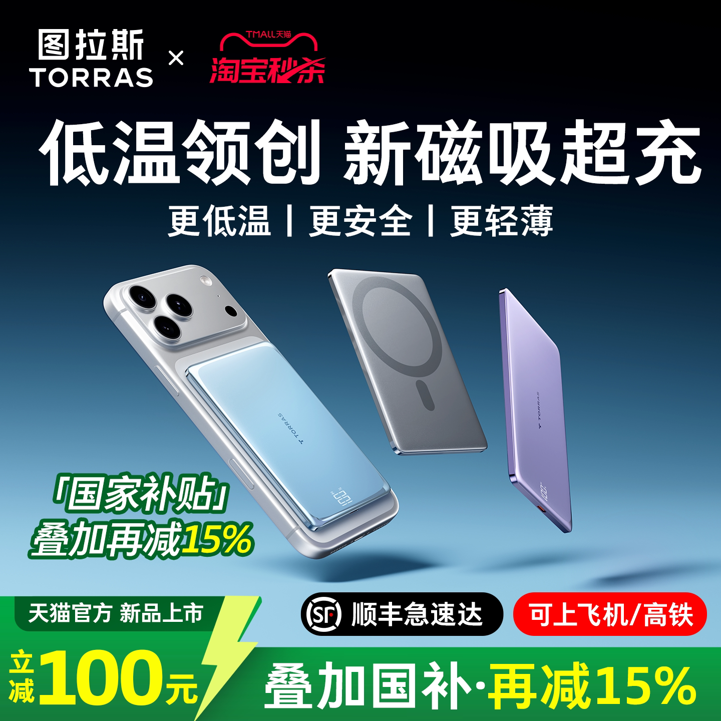 图拉斯磁吸充电宝2026新款 小冰片pro适用苹果17无线超薄便携3C认证可上飞机快充大容量专用移动电源官方正品