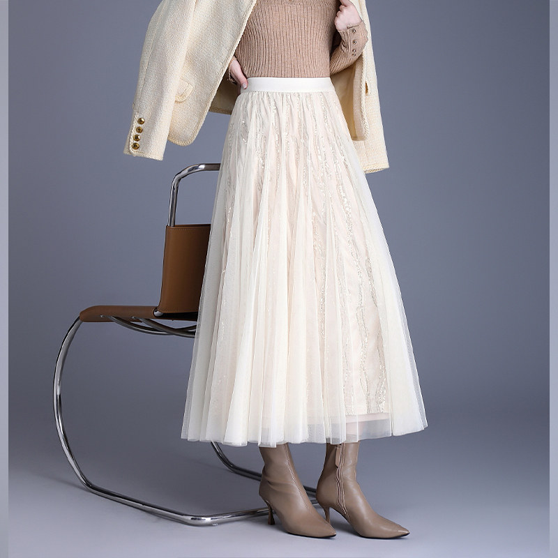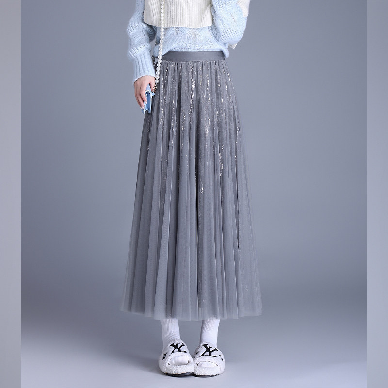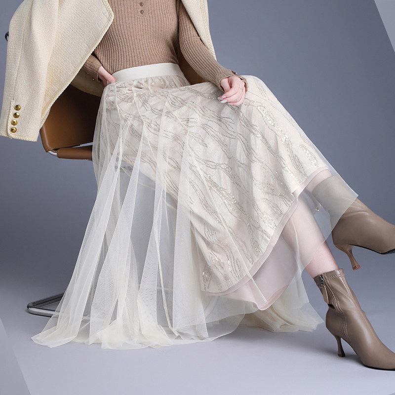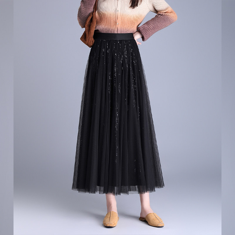 白鹿语亮片网纱半身裙25秋冬新款 超仙大摆A字半裙 高腰显瘦长款