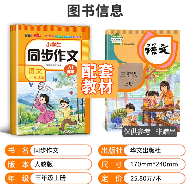 小学作文书小学生黄冈优秀作文大全3年级范文仿写素材全解语文满分作文写作全程指导积累书 三年级上册同步作文人教版 2025新版