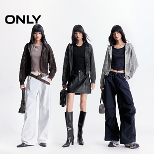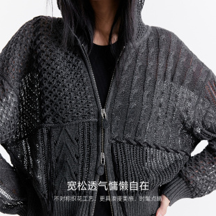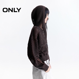 上衣女 针织衫 ONLY春季 宽松落肩不对称钩花编织肌理连帽开衫