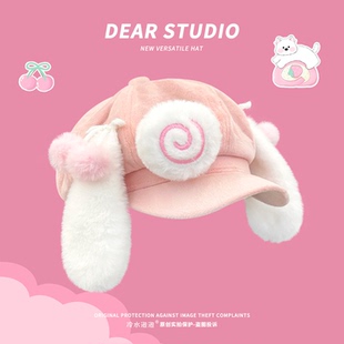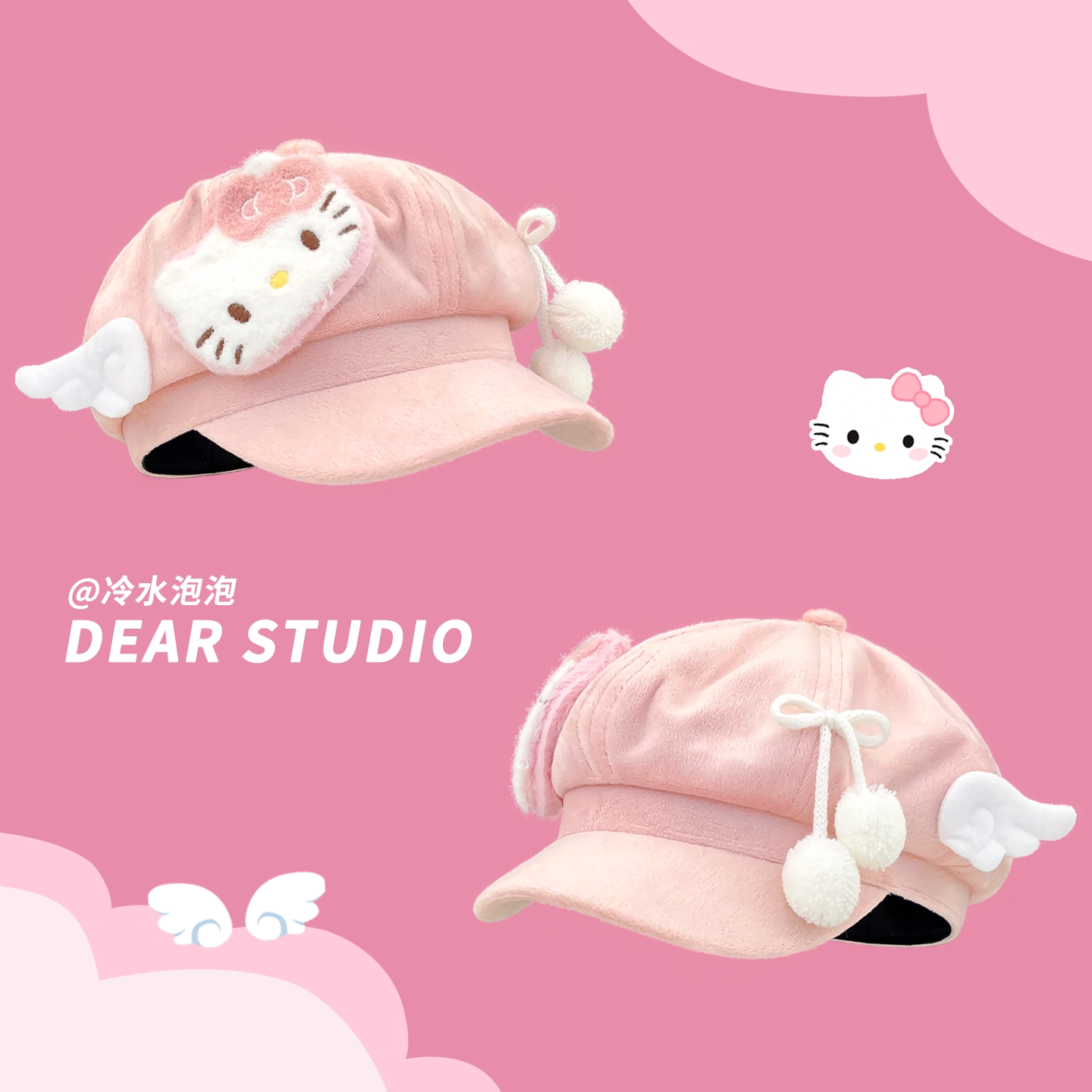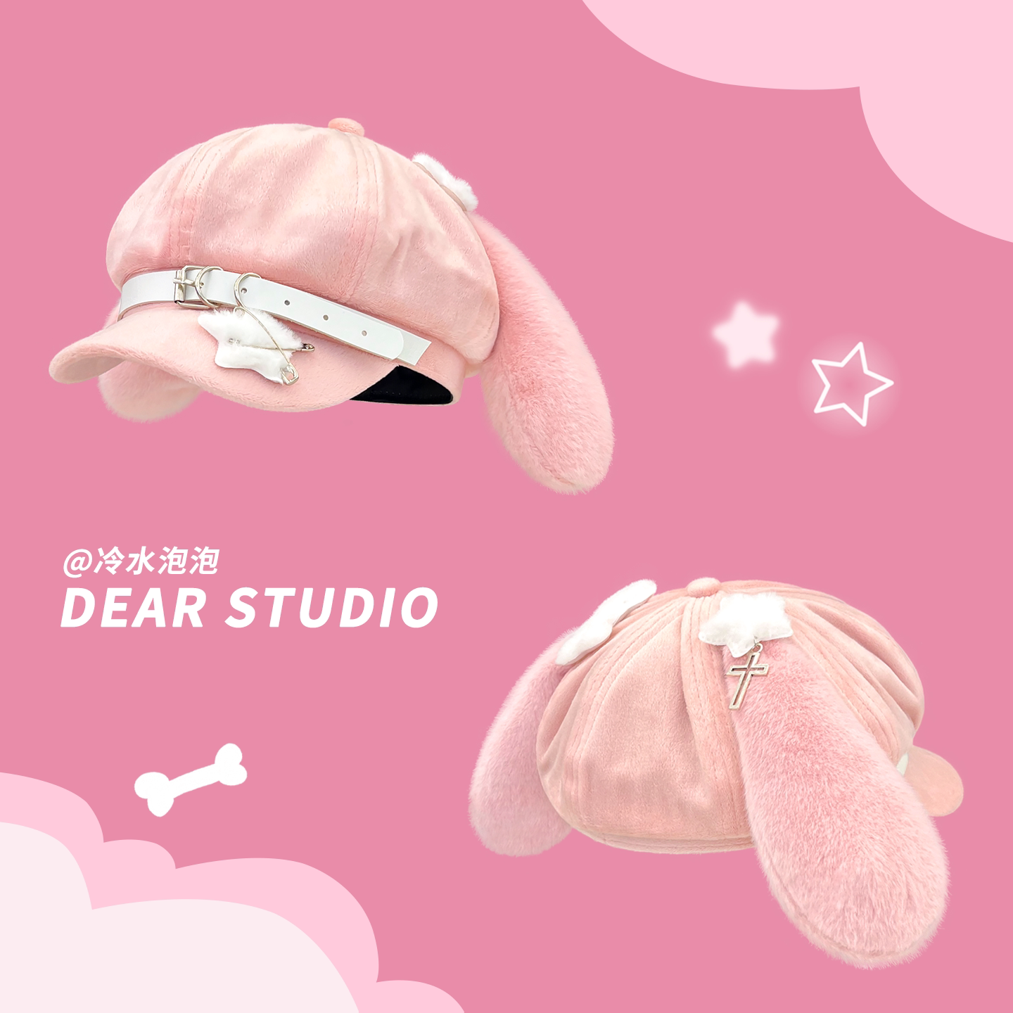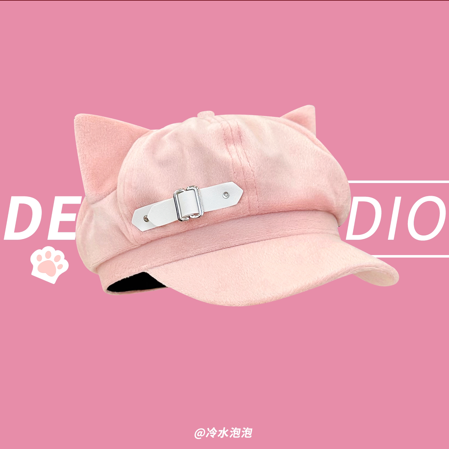 粉色y2k小众亚文化猫耳贝雷帽子女可爱kt猫宅系甜酷八角帽报童帽