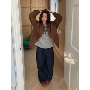 廓形棕色外套 复古慵懒翻领麂皮夹克女秋季 SIXI四喜家 霓虹古董街