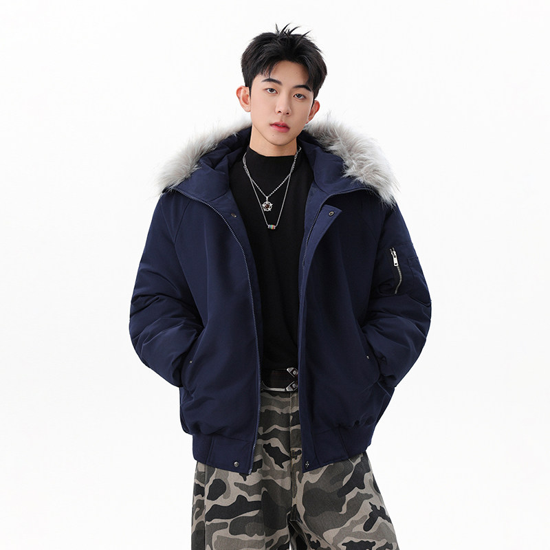 慵懒风派克服棉服 藏青色复古加厚夹棉连帽外套女胖mm美式 大码 女装